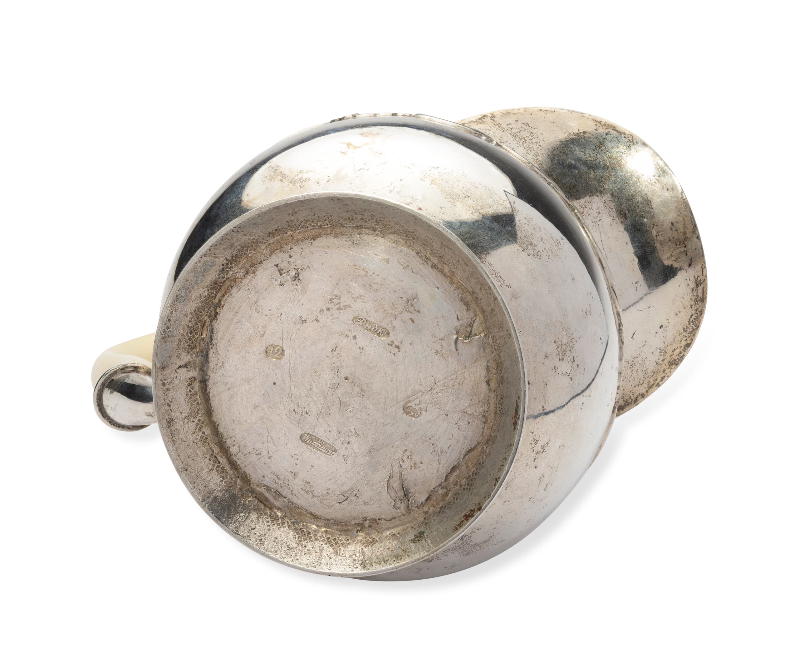 silver-gilt creamer with a bone handle, decorated with foliage and engraved monogram ‘M.A’ on the body