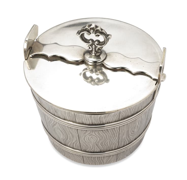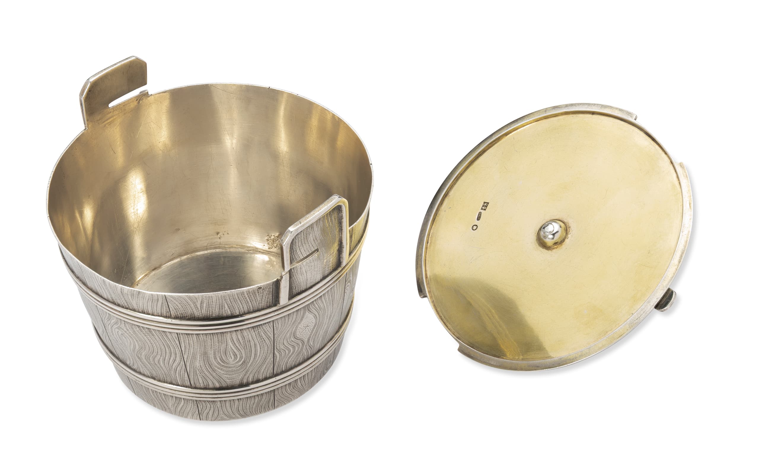 PARCEL-GILT SILVER TROMPE-L’OEIL SUGAR BOWL WITH A LID