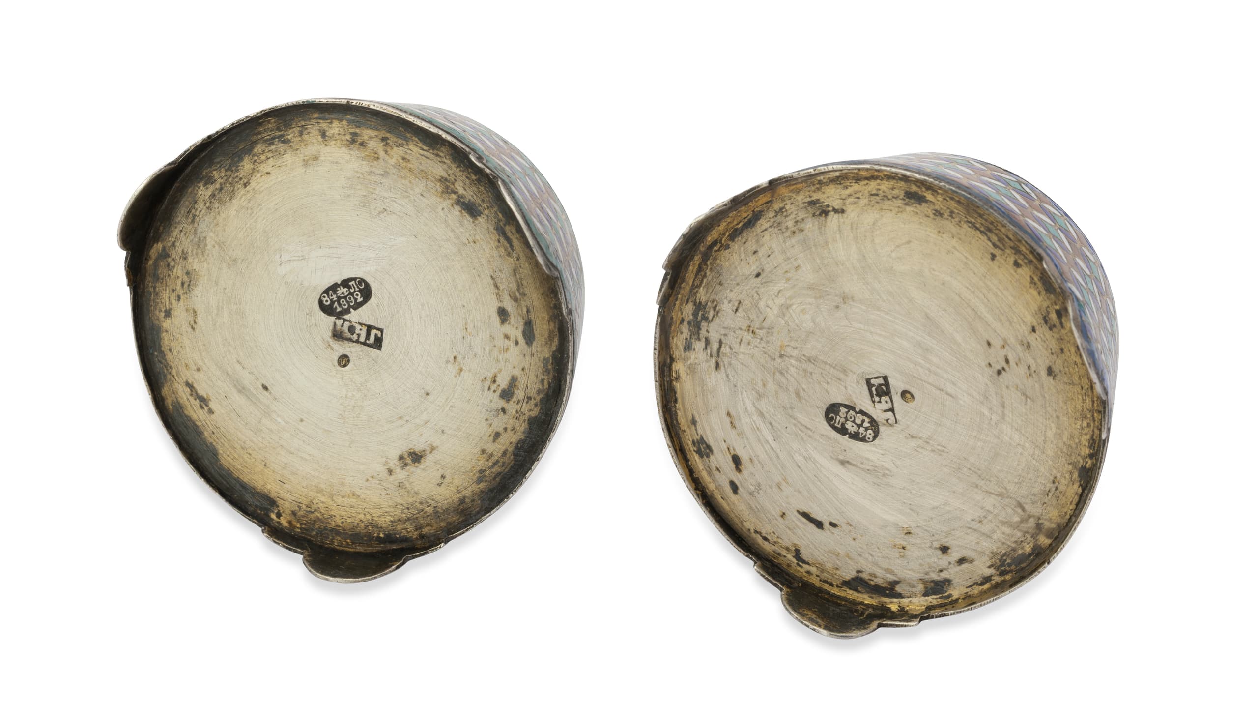 PAIR OF RUSSIAN PARCEL-GILT SILVER AND ENAMEL SALT CELLARS