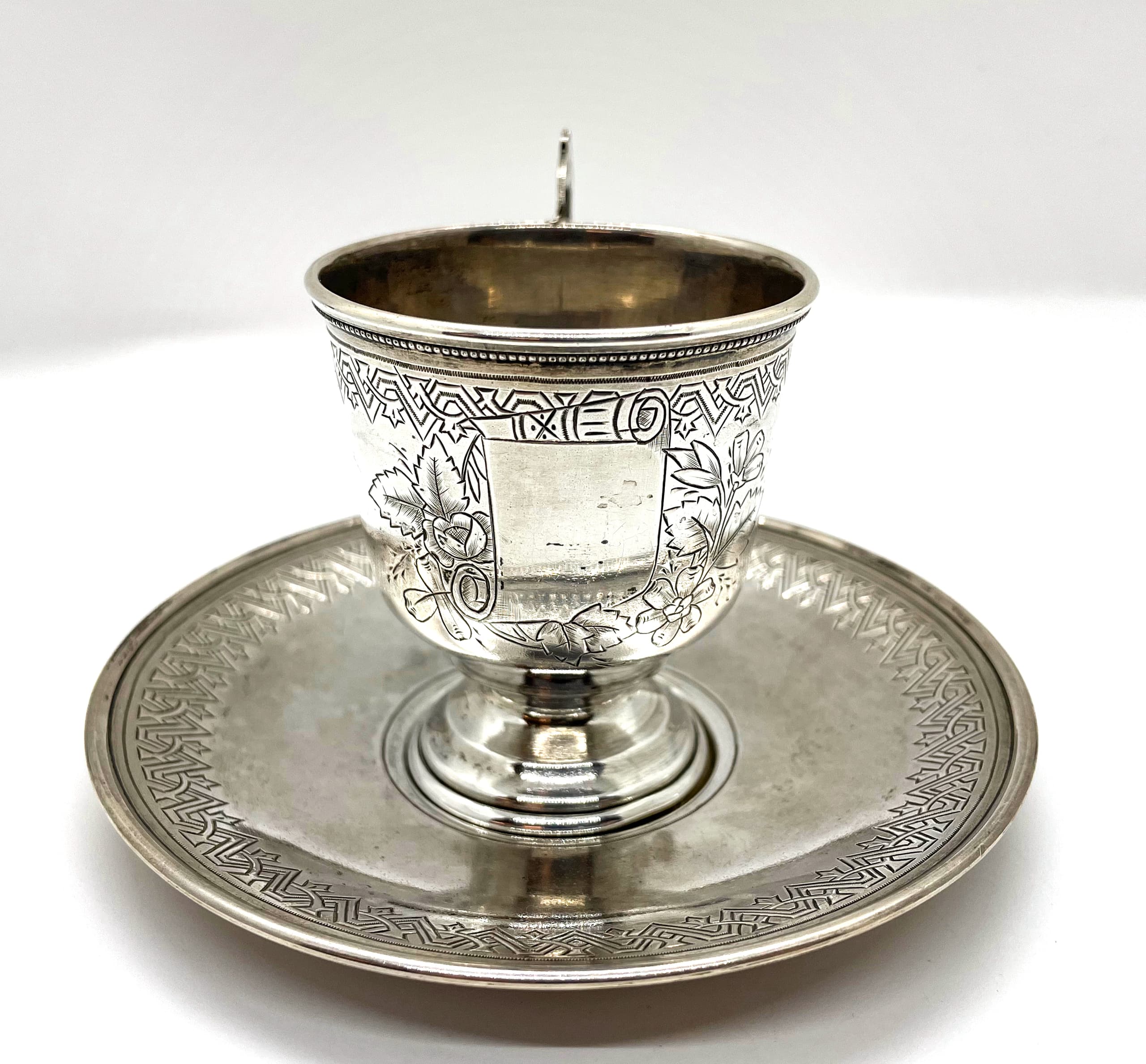 SILVER CUP AND SAUCER IN NEO-RUSSIAN STYLE Workshop of Vasily Efimovich Baladanov, Moscow, 1889