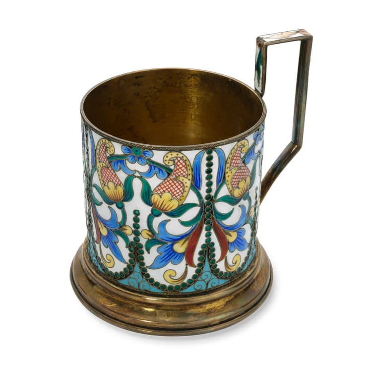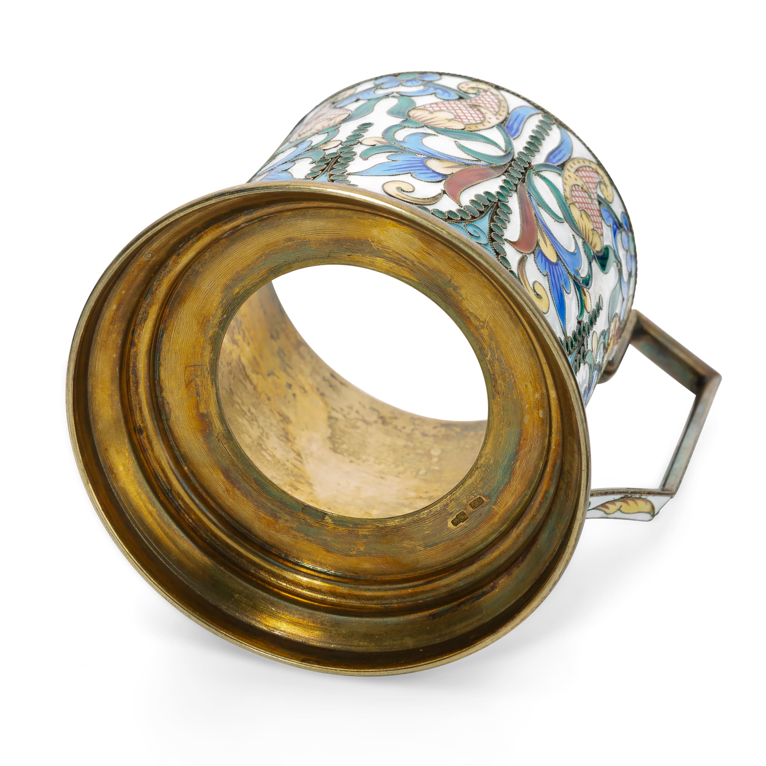 SOVIET SILVER-GILT AND ENAMEL TEA GLASS HOLDER Leningrad Jewellery Factory, 1954