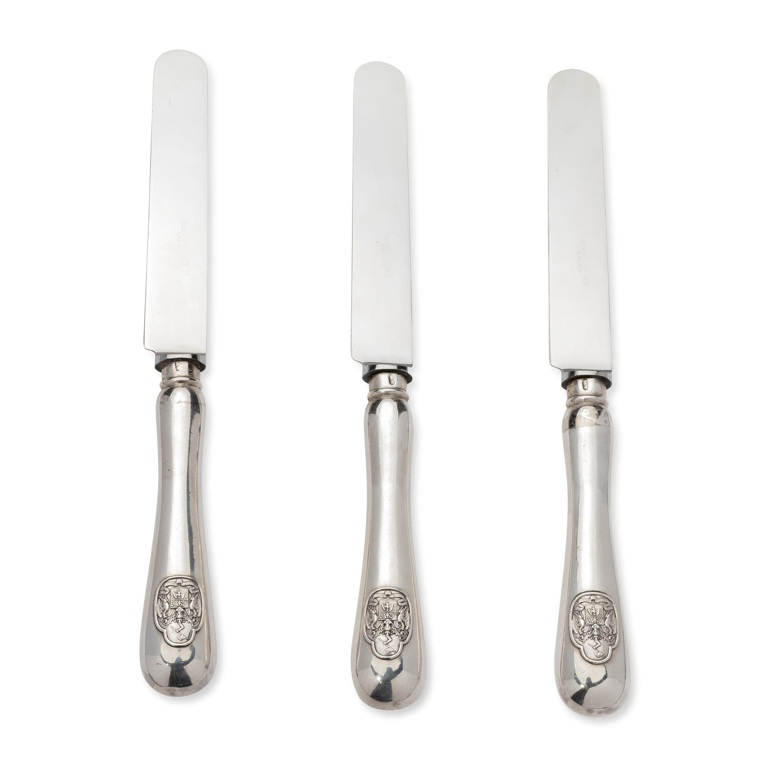 SET OF THREE KNIVES WITH RUSSIAN SILVER HANDLES