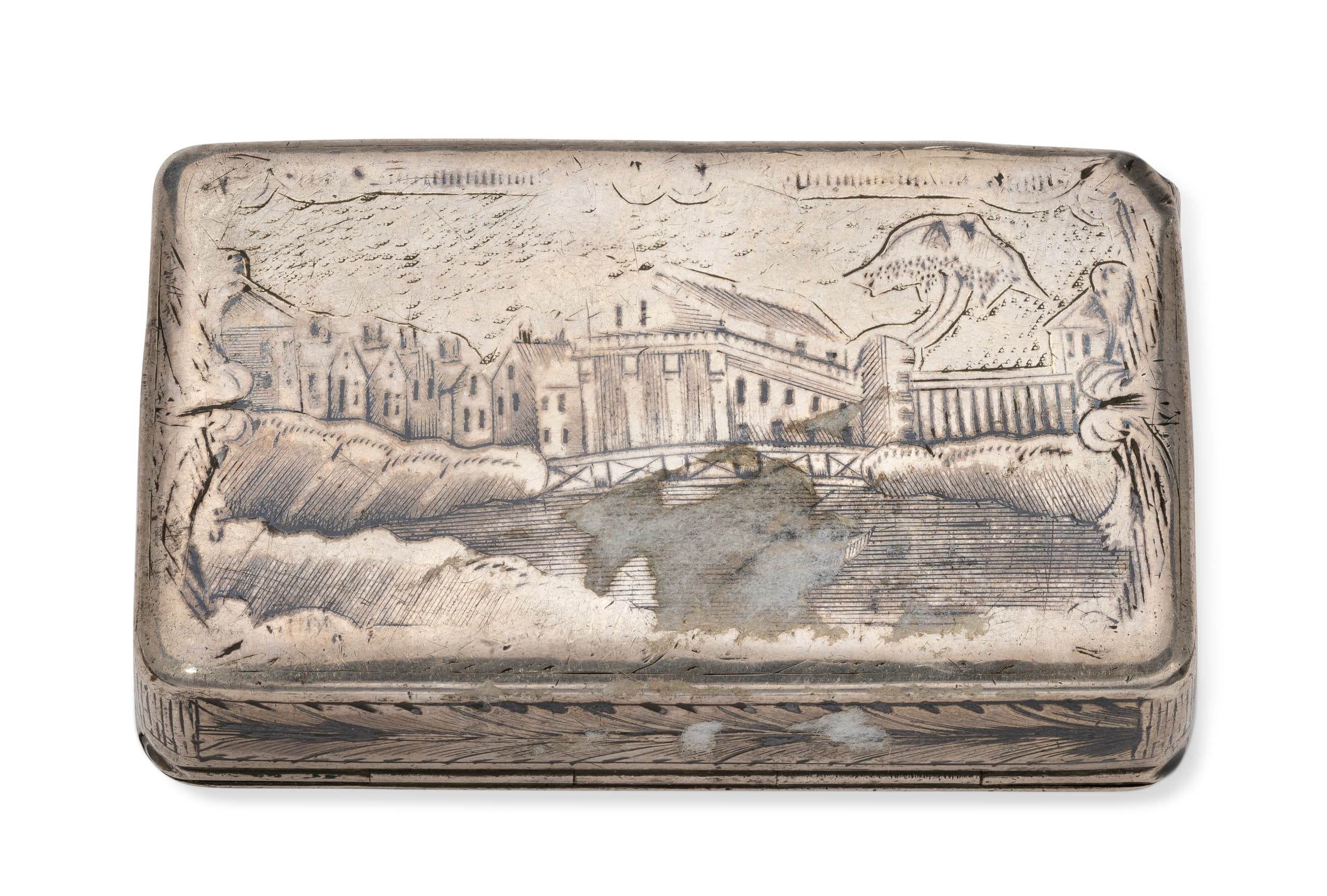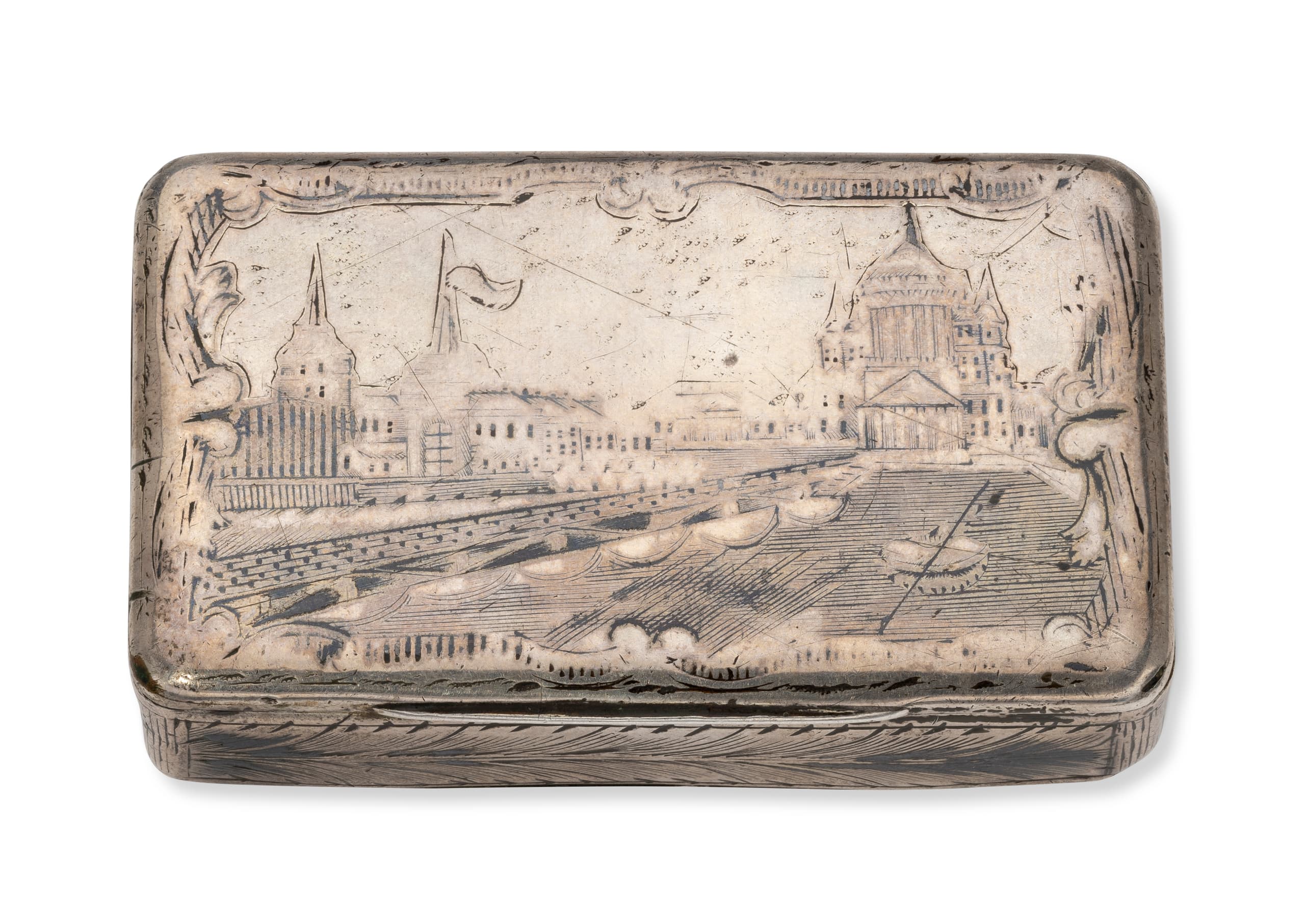 RUSSIAN SILVER SNUFF BOX WITH VIEW OF A CATHEDRAL Moscow, 19th century