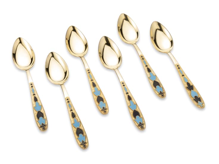 SET OF SIX SMALL SOVIET SILVER AND ENAMEL COFFEE SPOONS