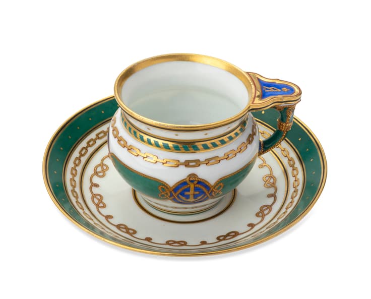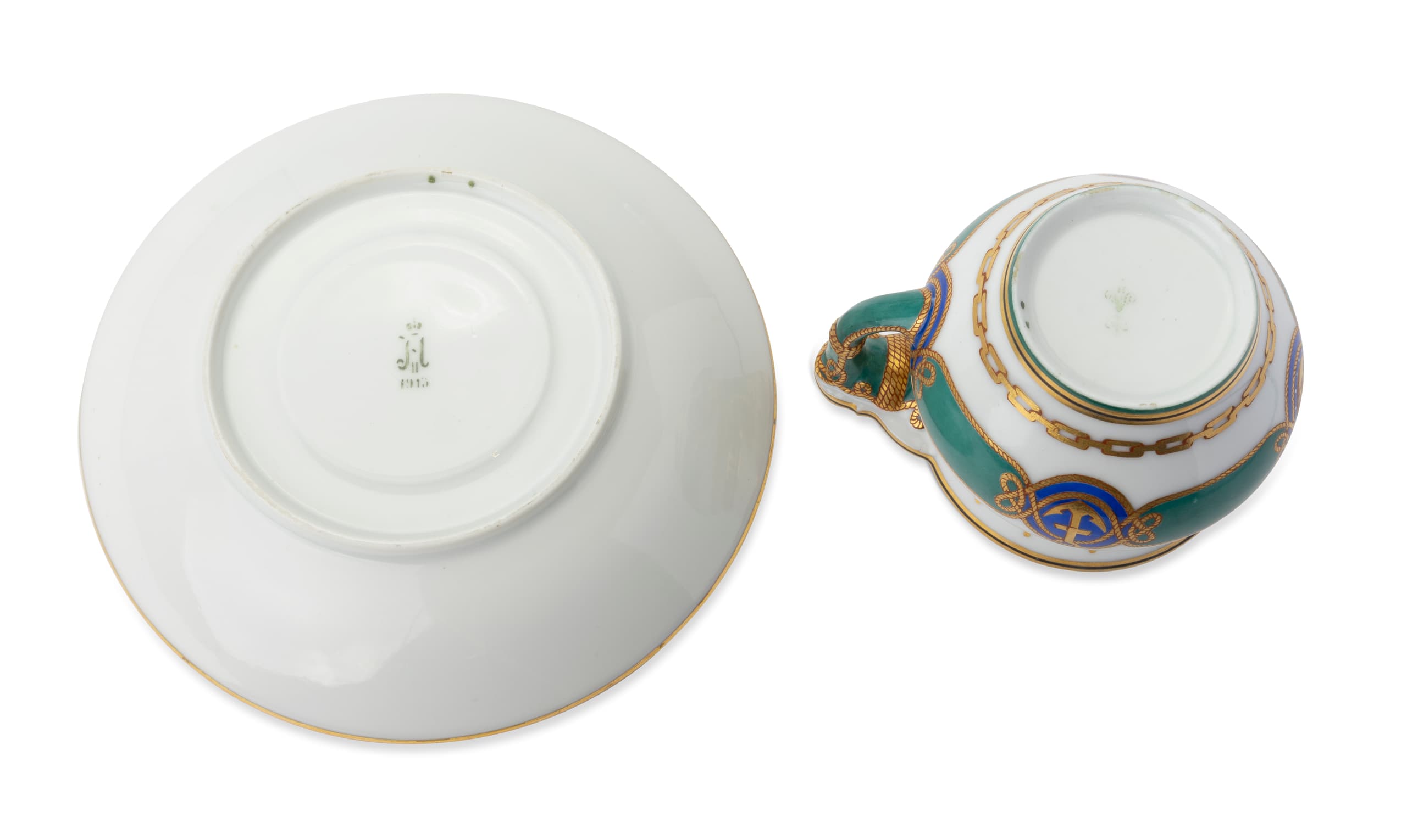 CUP AND SAUCER FROM THE IMPERIAL YACHT CEREMONIAL SERVICE 'DERZHAVA' IMPERIAL PORCELAIN FACTORY, ST PETERSBURG