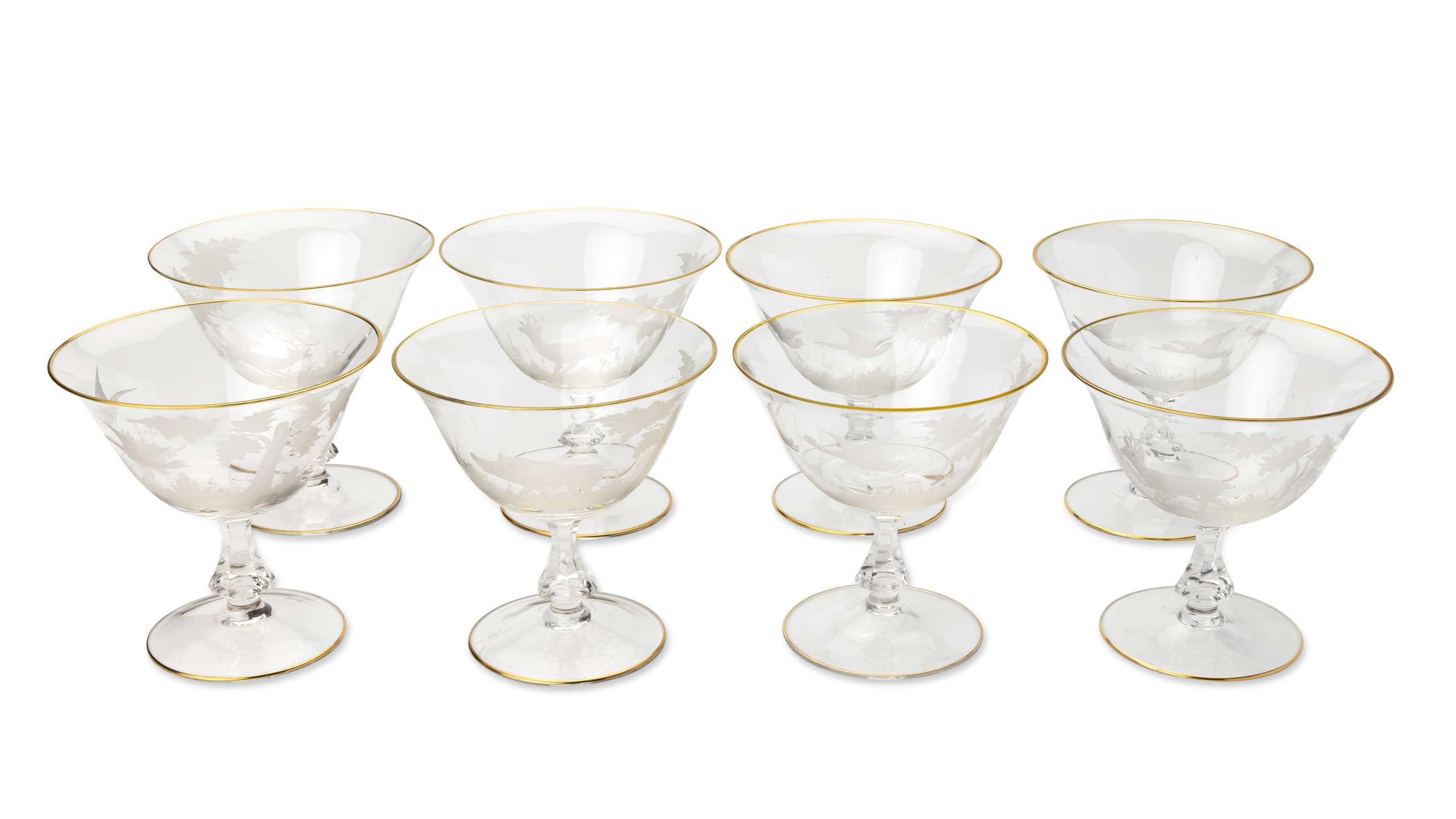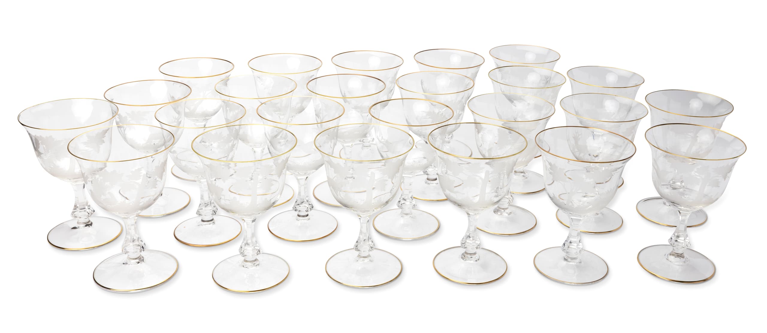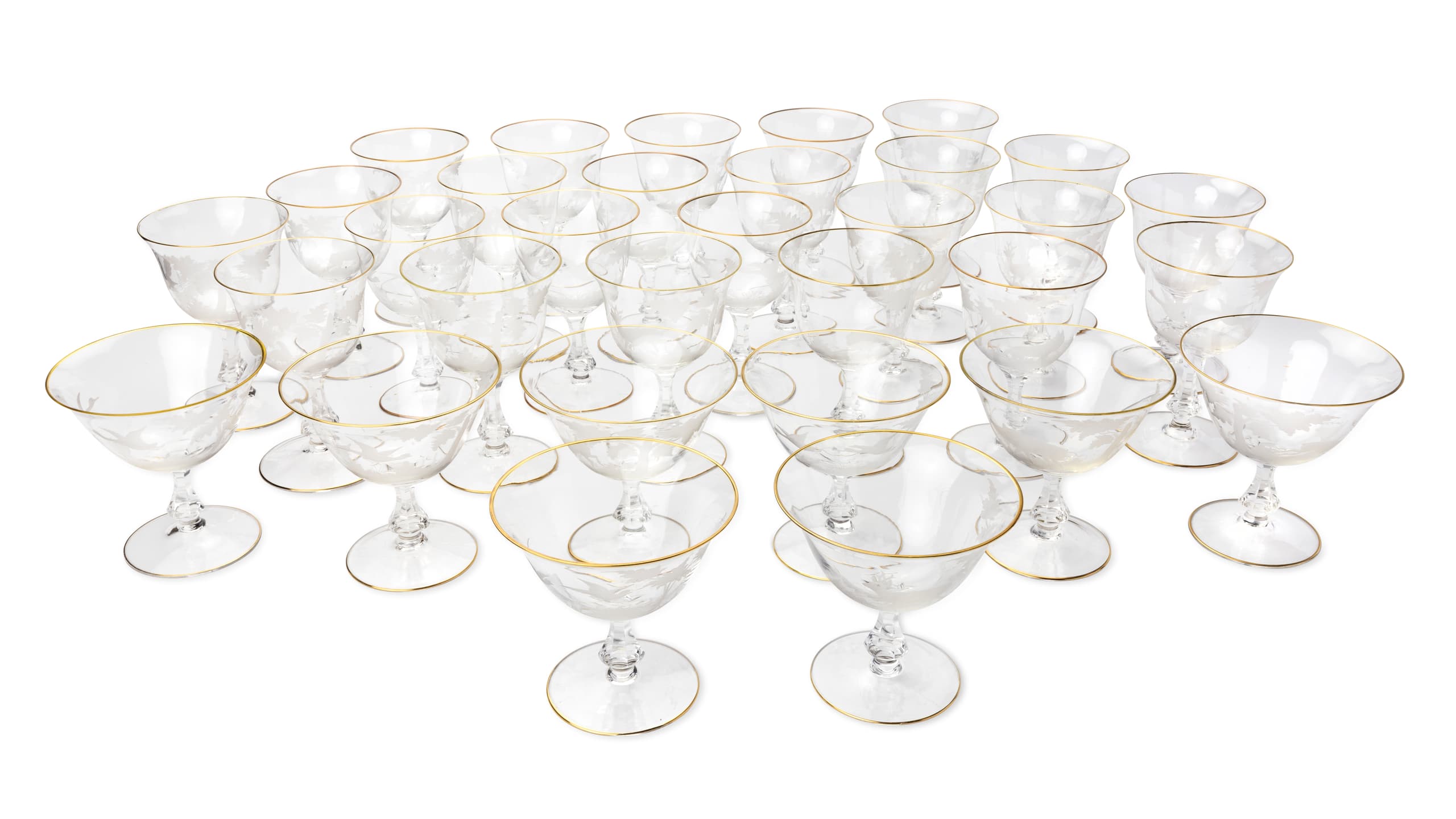 ‘FOREST’ SET OF BOHEMIAN CRYSTAL 24 WINE GLASSES AND 8 CHAMPAGNE FLUTES