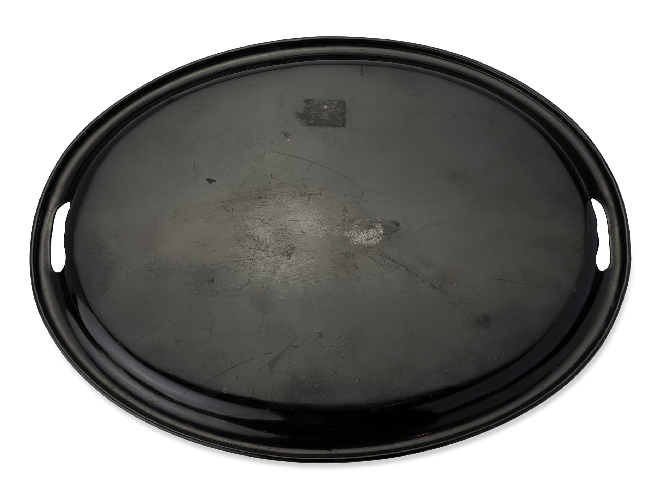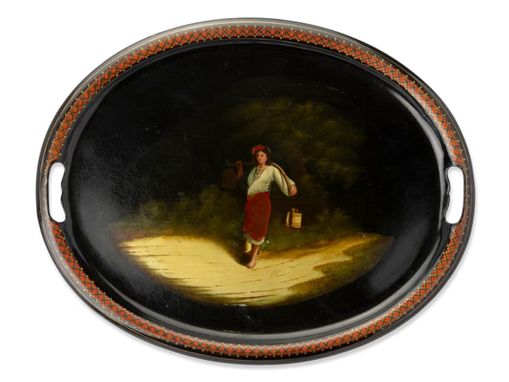LACQUERED PAPIER-MACHÉ TRAY PAINTED WITH A WATER CARRIER