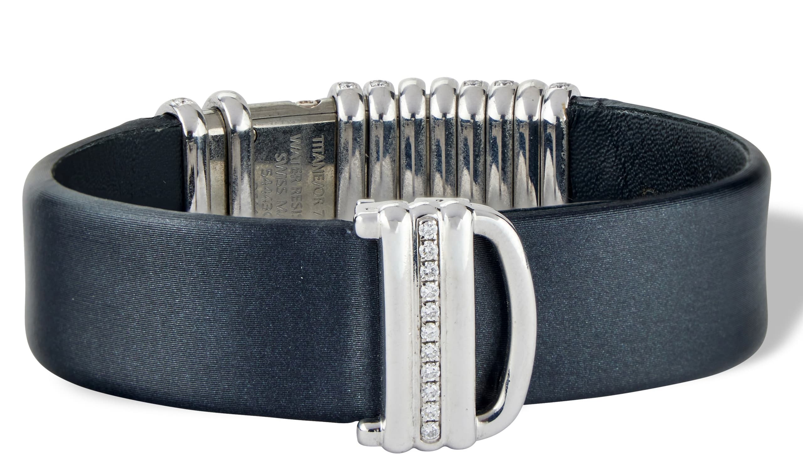 Strap: black satin with 18k white gold folding clasp set with diamonds