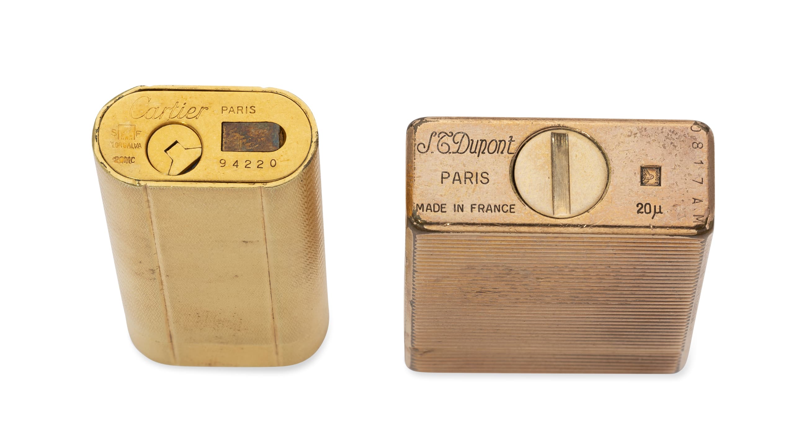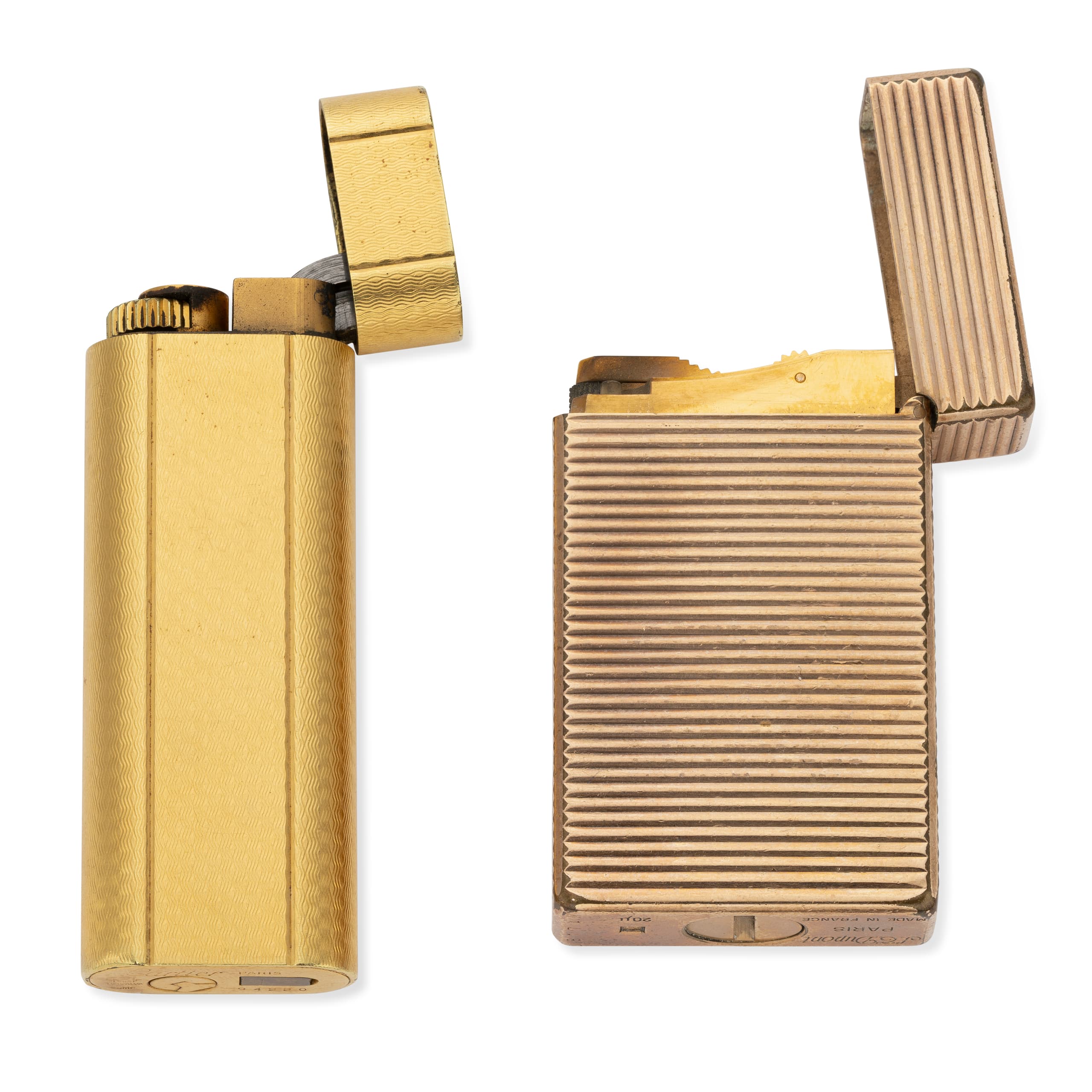 CARTIER AND S.T. DUPONT SET OF TWO VINTAGE GOLD PLATED LIGHTERS