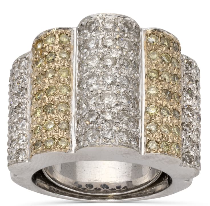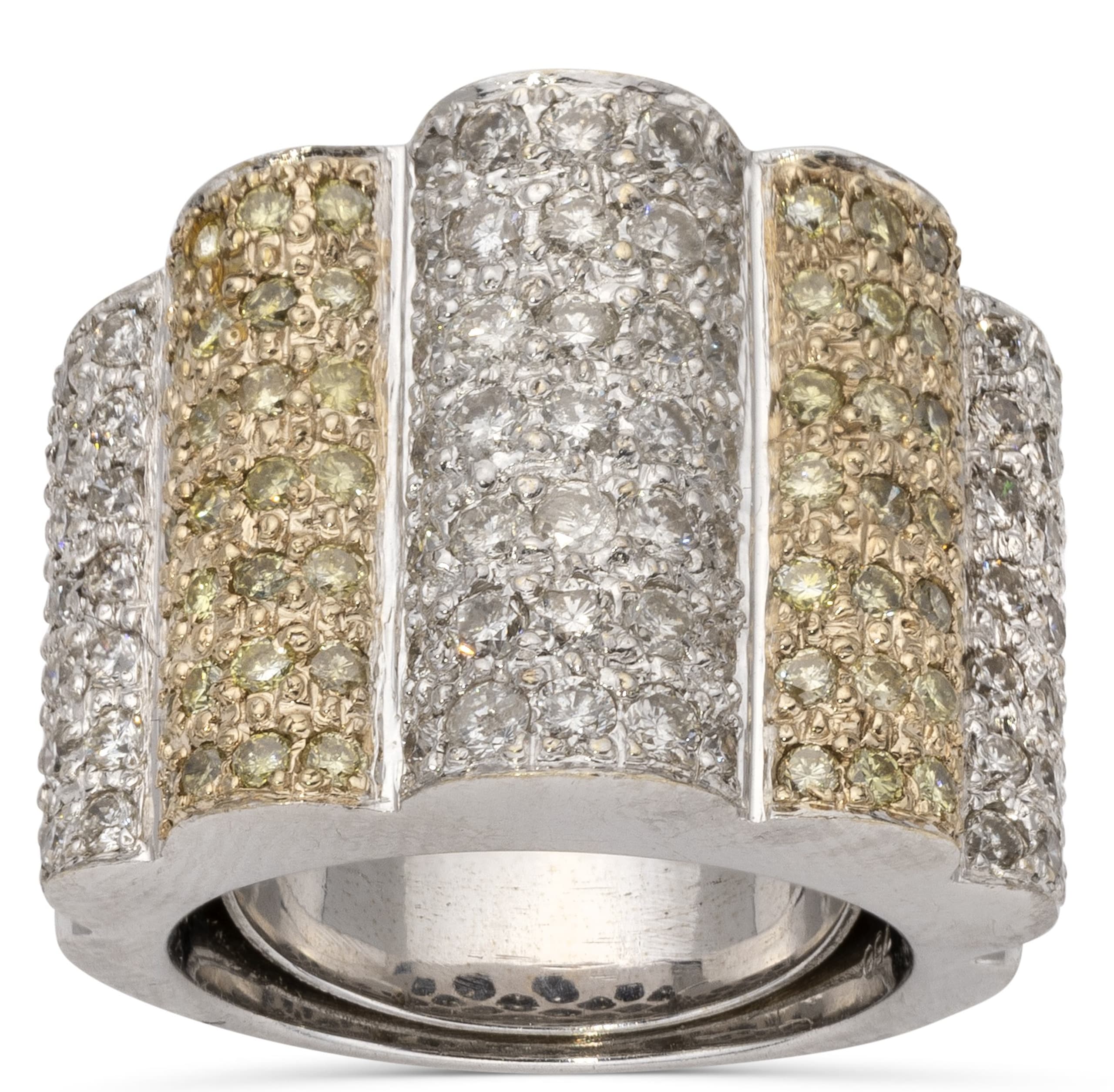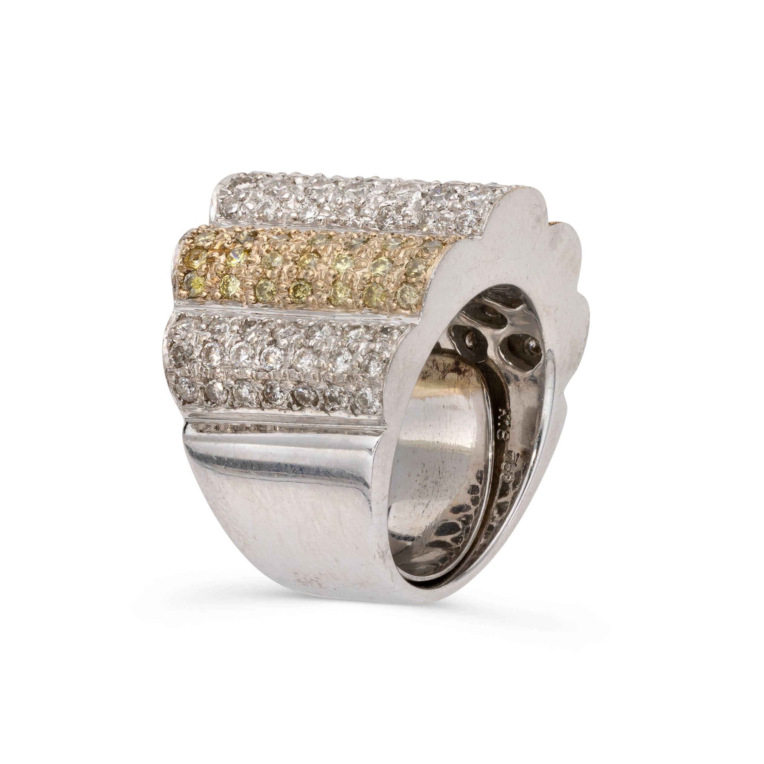 18k white gold ring set with brilliant-cut diamonds weighing in total approximately 1.30 ct. and yellow diamonds weighing in total approximately 0.75 ct. Hallmarks: ‘18K’, ‘750’ size: 51 gross weight: 23.19 gr.