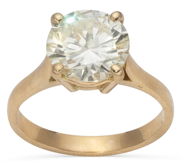 18k yellow gold (engagement) ring set with diamond weighting approximately 3.35 ct. (KL/VVS2) size: 56 gross weight: 4.96 gr.