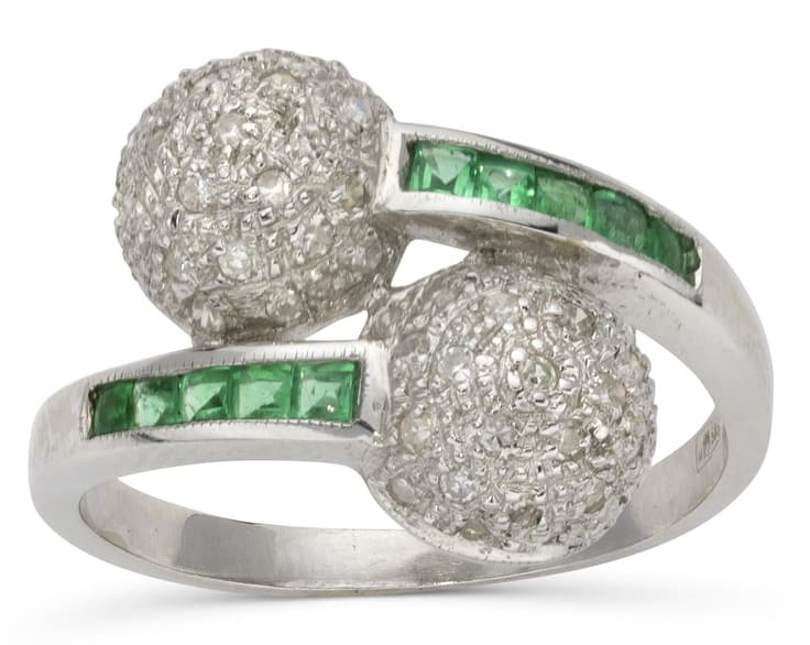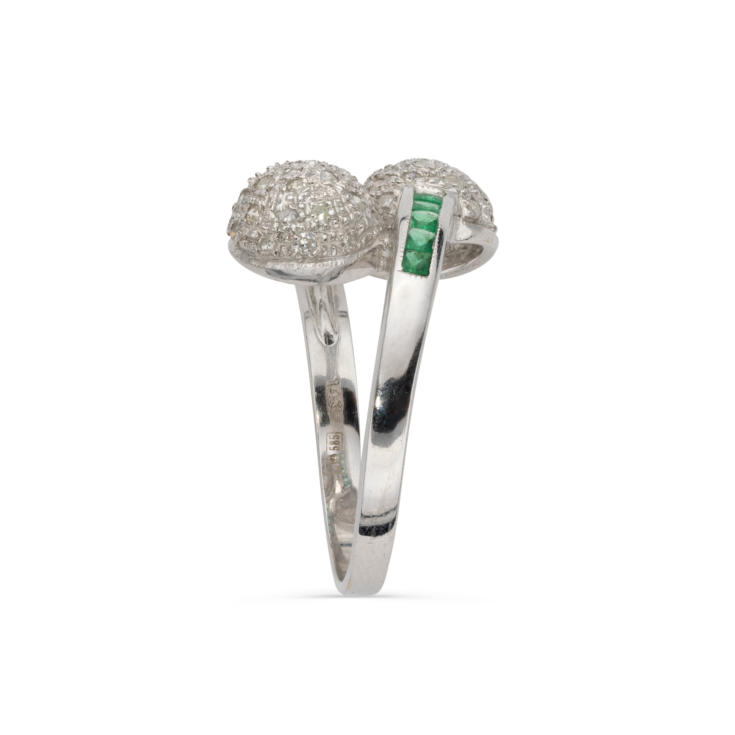 ‘TOI ET MOI’ 14K WHITE GOLD DIAMOND AND EMERALD RING