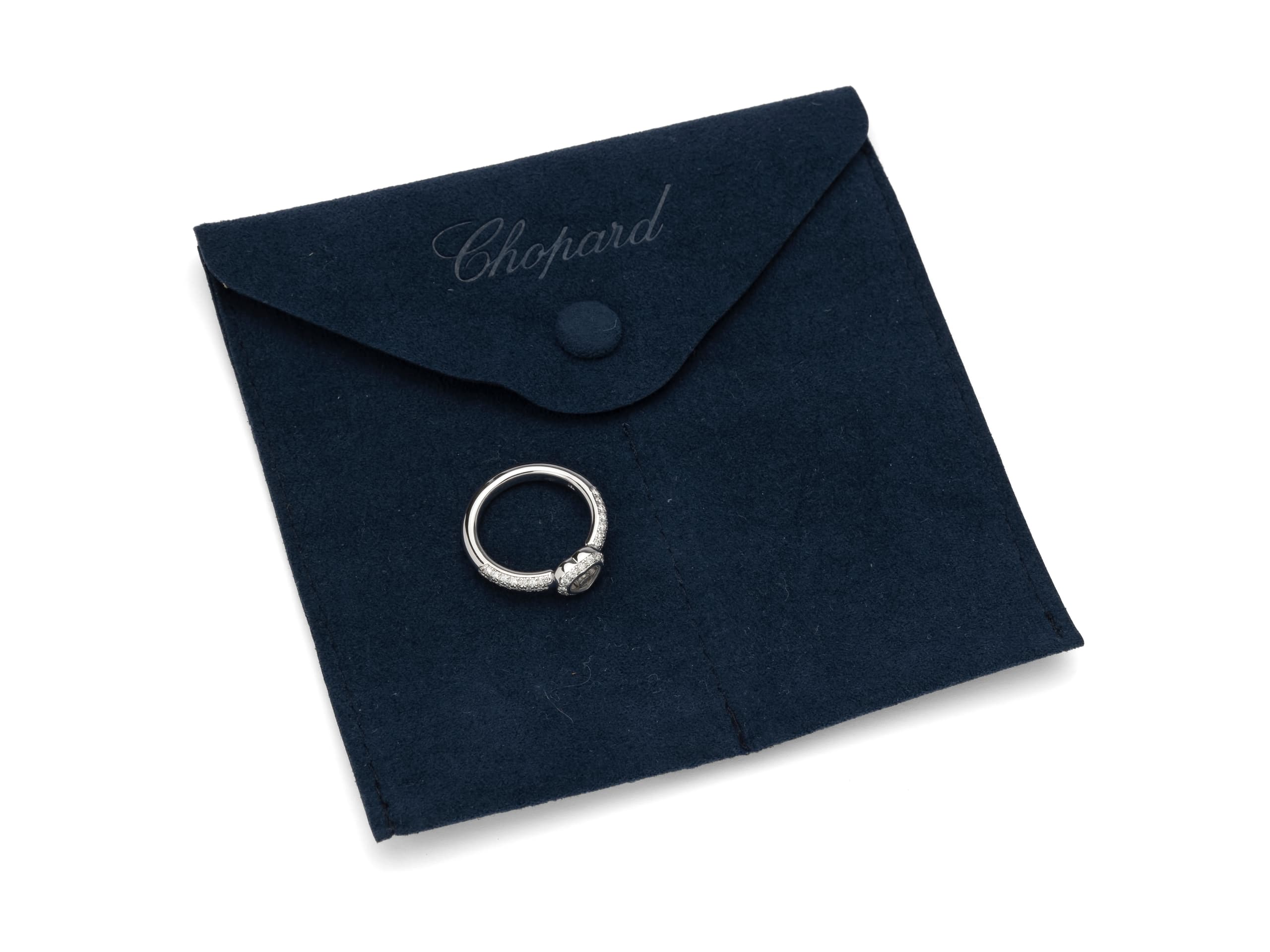 18K white gold and diamond heart ring includes original pouch signed Chopard, '750' D. inside 1.8 cm gross weight: 6.92 gr.