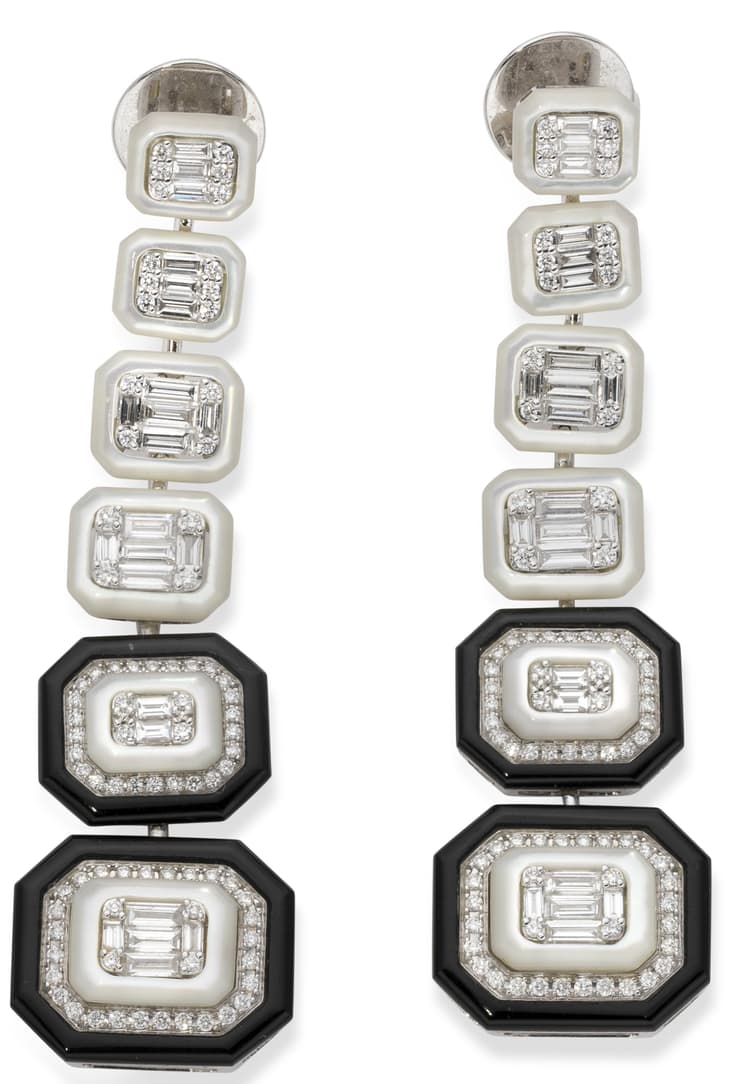 GIRONA PRIVÉ 18K WHITE GOLD DIAMOND, BLACK ONYX AND MOTHER-OF-PEARL PENDANT EARRINGS
