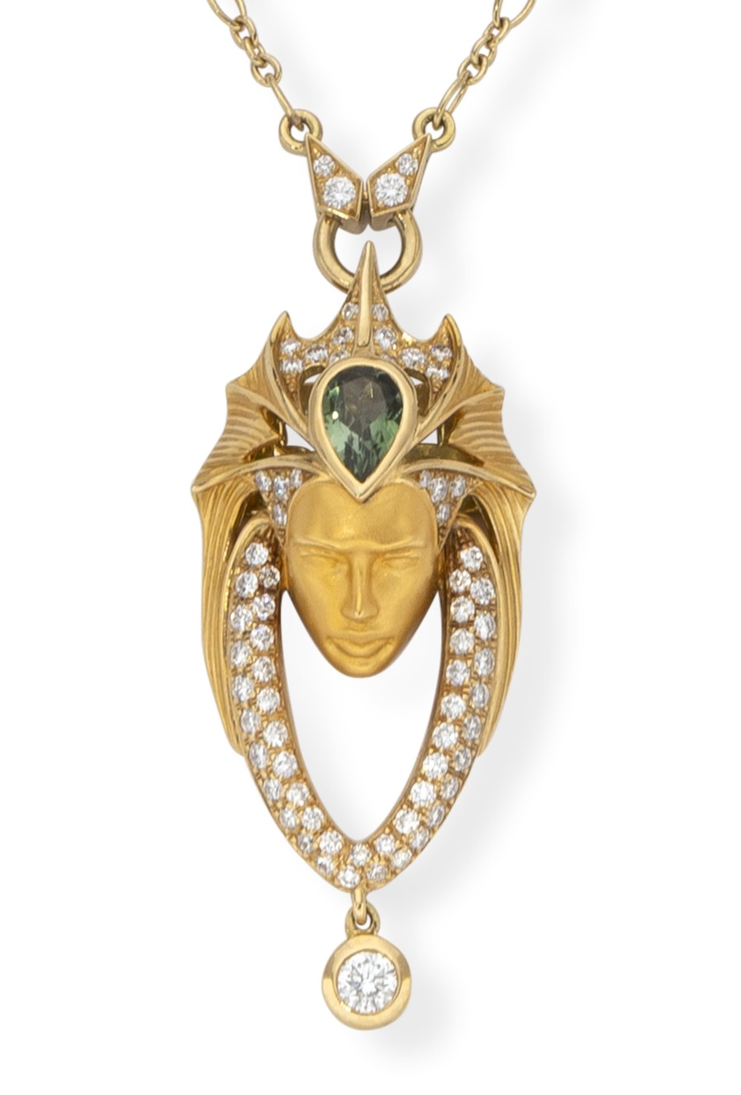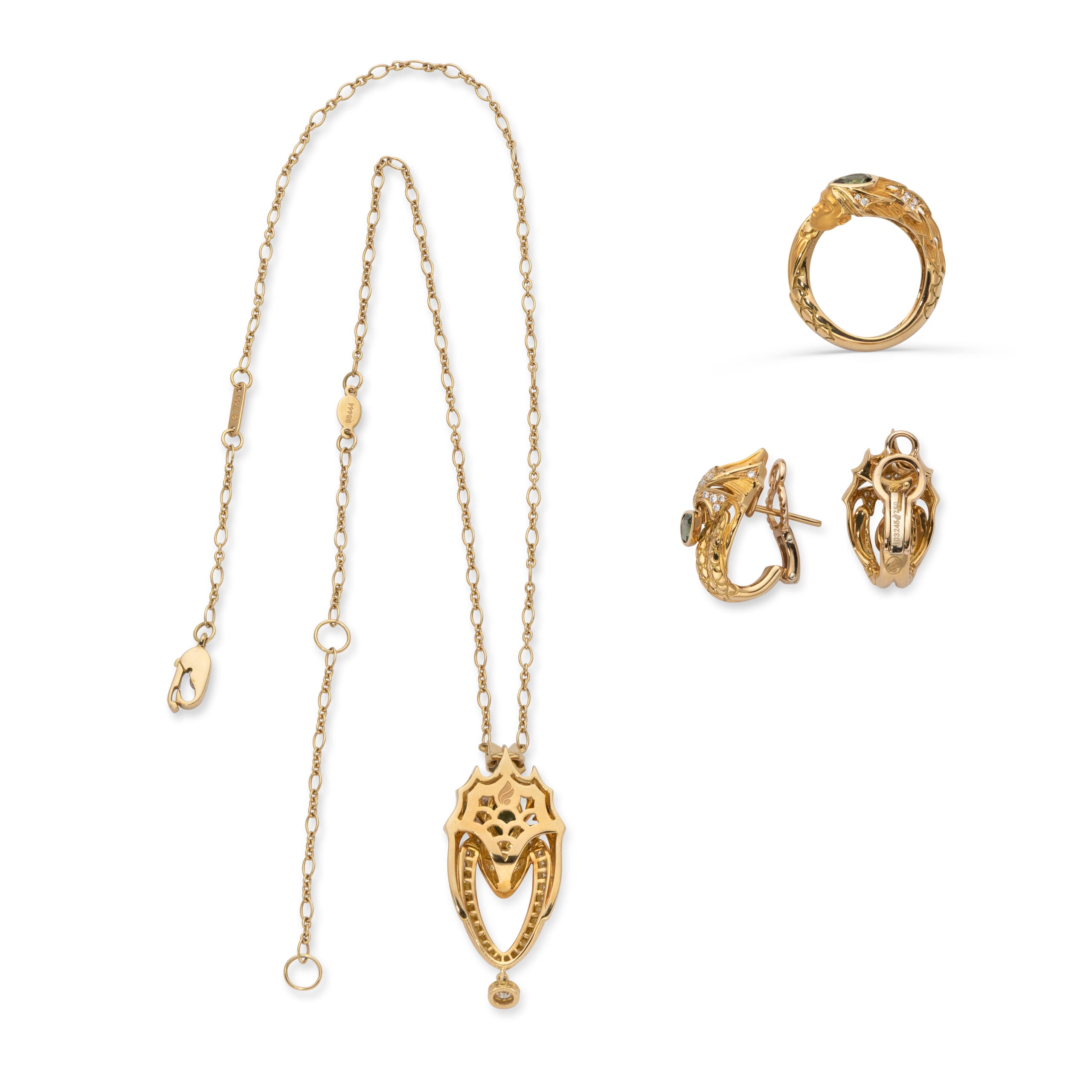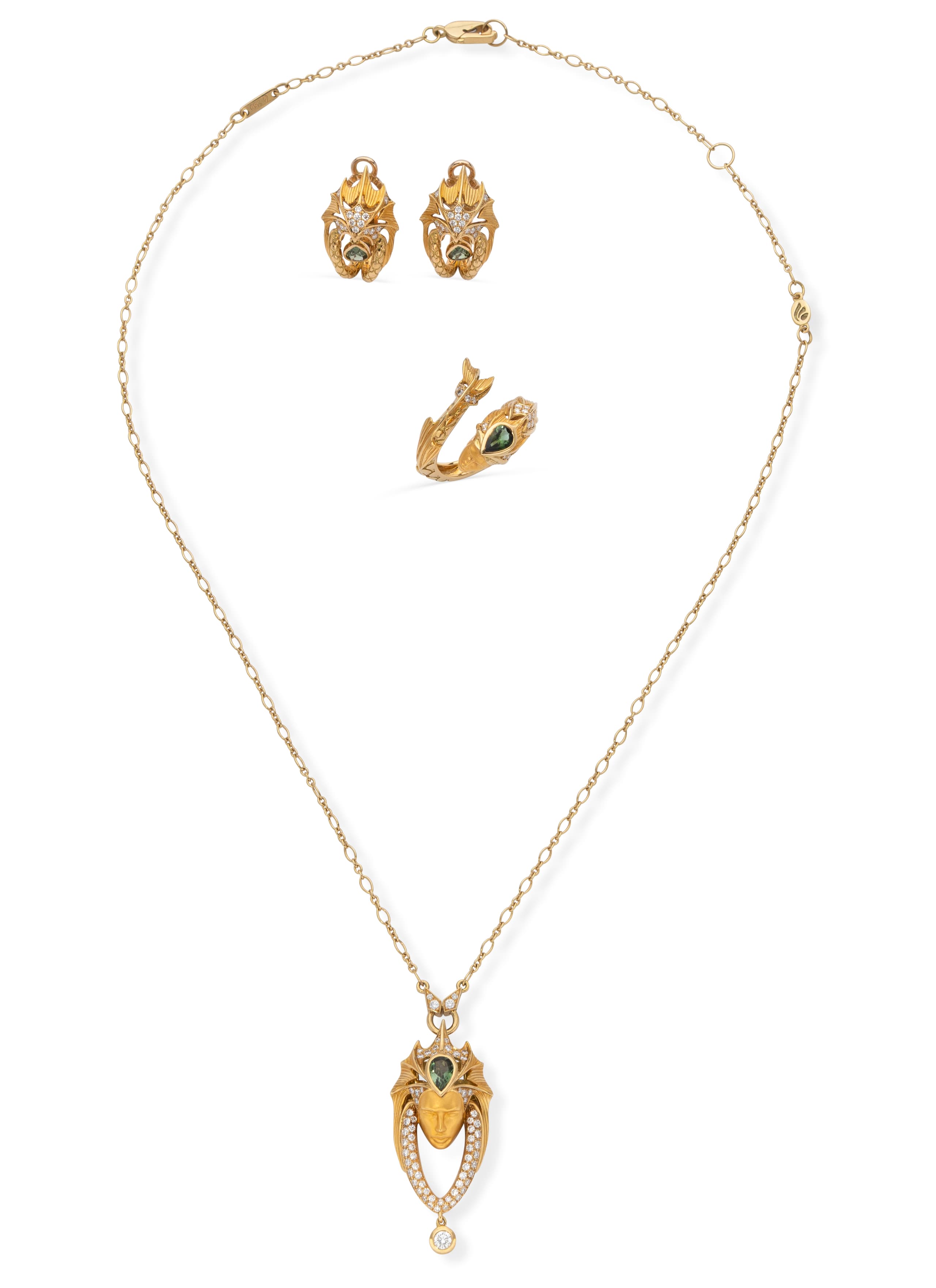 MAGERIT ‘ATLANTIS’ SET OF 18K YELLOW GOLD, DIAMOND AND TOURMALINE NECKLACE, EARCLIPS AND RING
