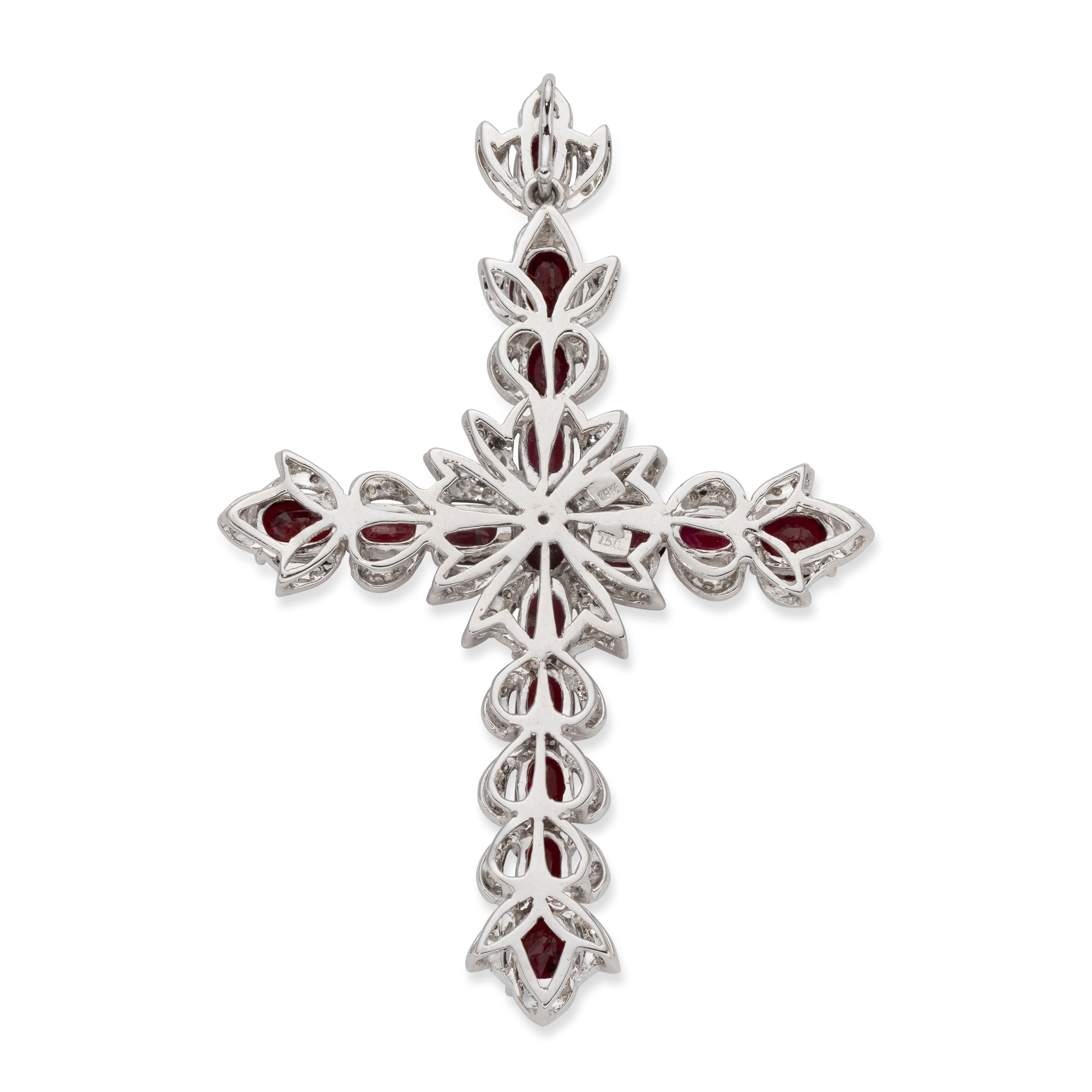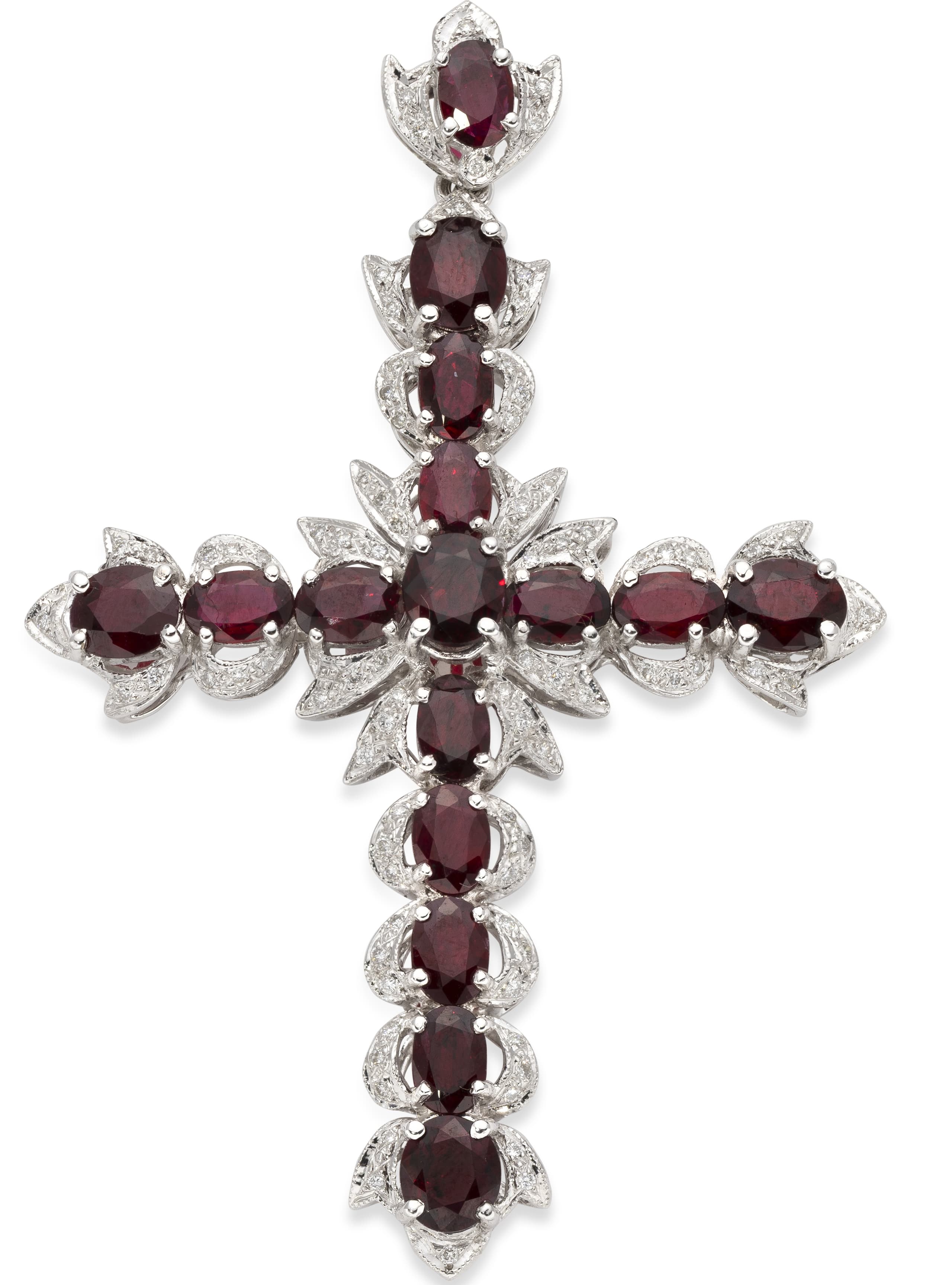 18k white gold cross set with rubies weighting in total approximately 8.00 ct. and brilliant-cut diamonds weighting in total approximately 0.50 ct.