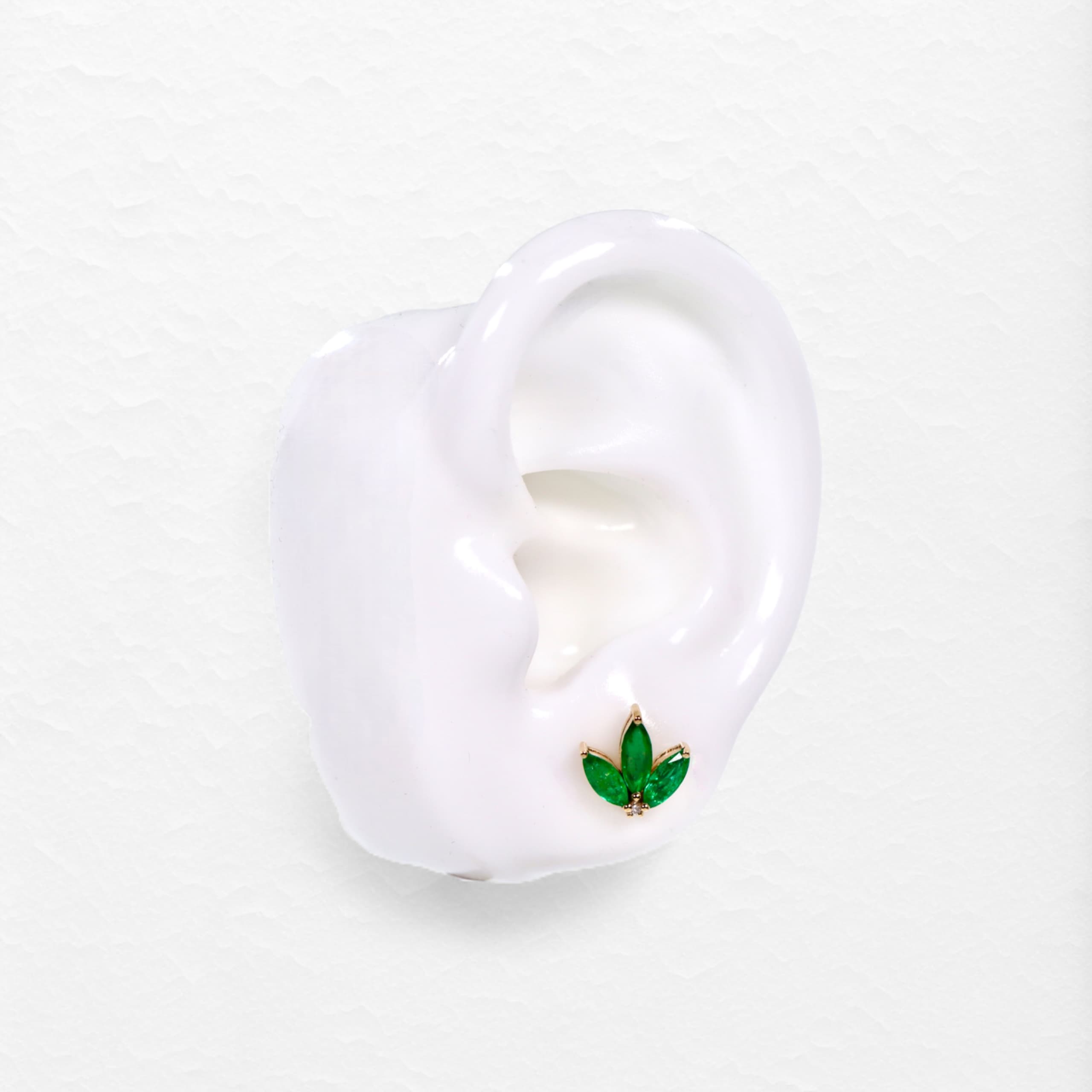 18K YELLOW GOLD STUD EARRINGS WITH EMERALDS AND DIAMOND