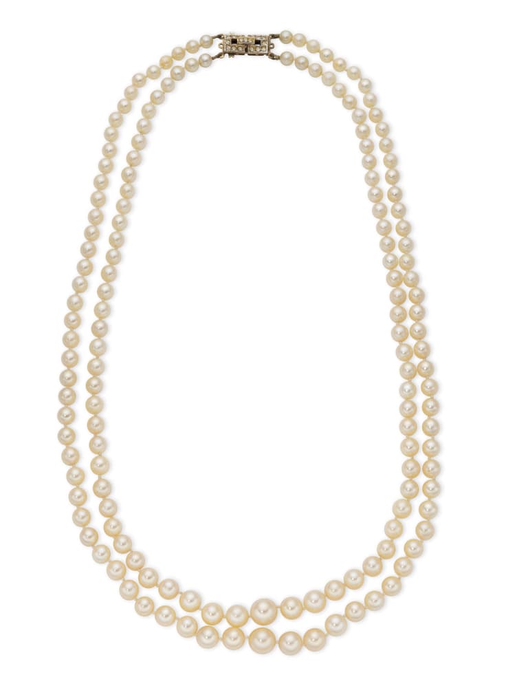 F.LLI MENEGATTI: A VINTAGE DOUBLE-STRAND CULTURED PEARL NECKLACE WITH 800 SILVER 'FANCY CLASP'