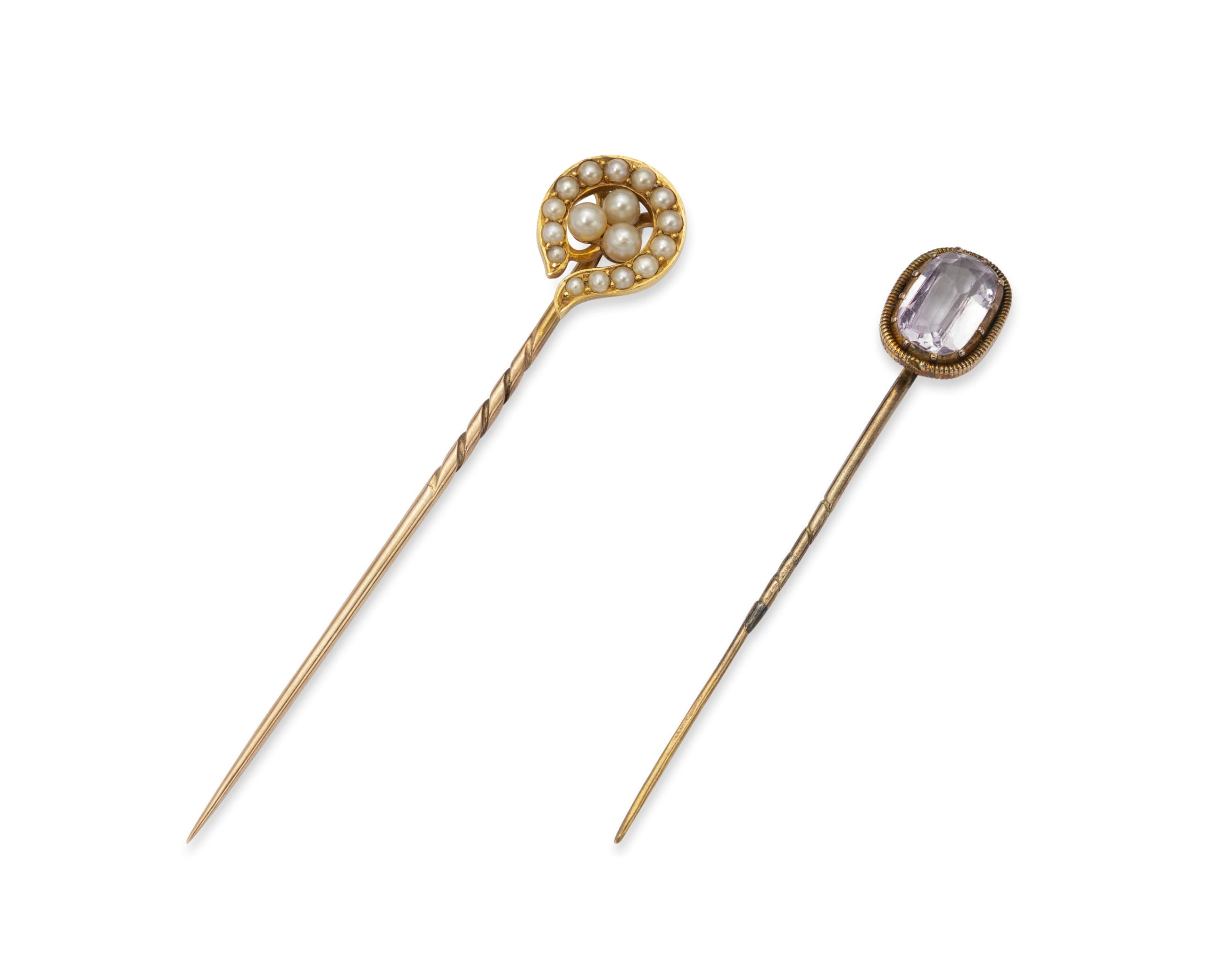 SET OF TWO ANTIQUE 14K GOLD TIE PINS
