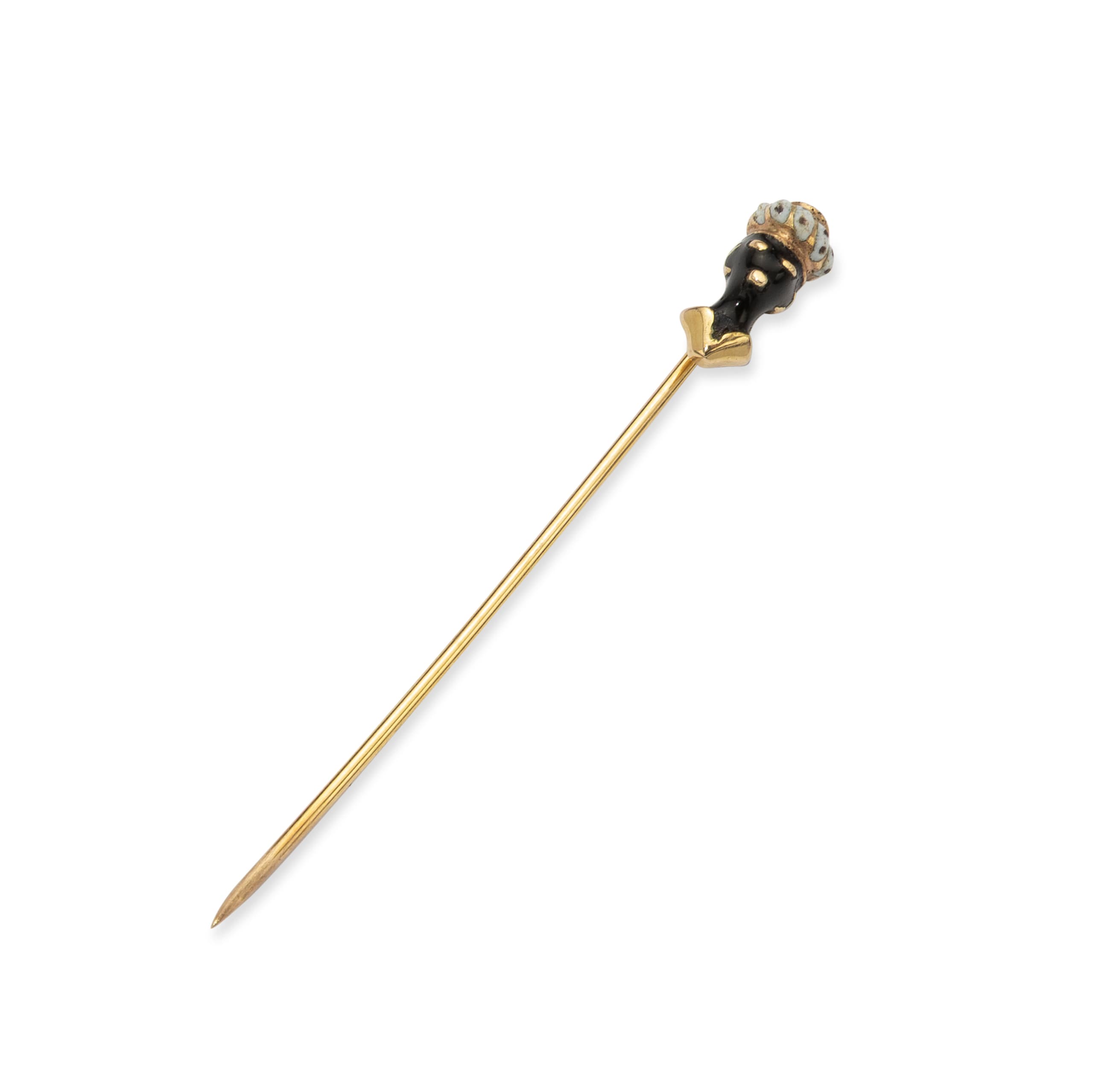 ANTIQUE GOLD AND ENAMEL BLACKAMOOR TIE PIN
