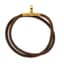 Brown rolled leather bracelet featuring a gold-toned metal charm and a push-lock clasp.