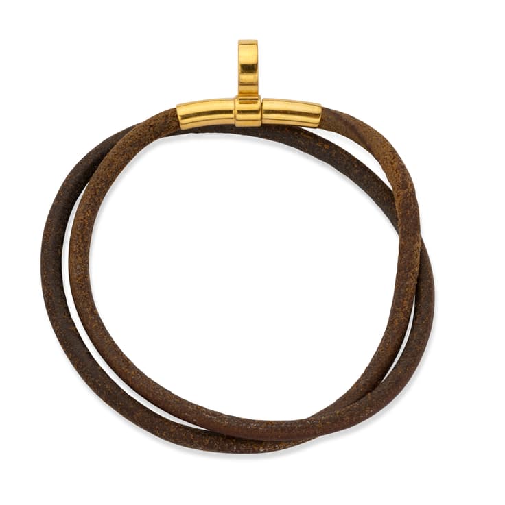 HERMÈS KELLY DOUBLE TOUR LEATHER BRACELET WITH GOLD PLATED HARDWARE