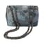 The Flap Bag is in Swarovski crystals and grey leather with silver tone hardware and has a front flap with signature CC turnlock closure, adjustable interwoven silver tone chain link and a grey leather shoulder strap.