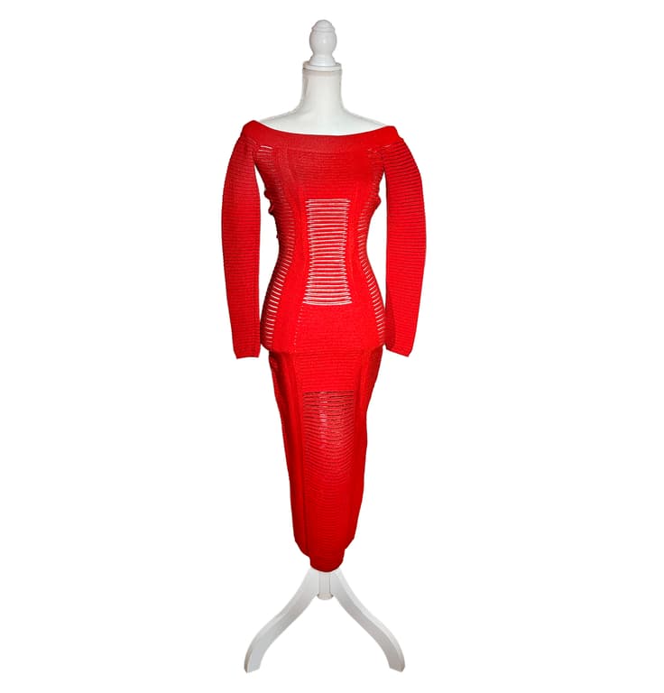 Off-shoulder ribbed-knit midi dress, Spring-Summer 2022