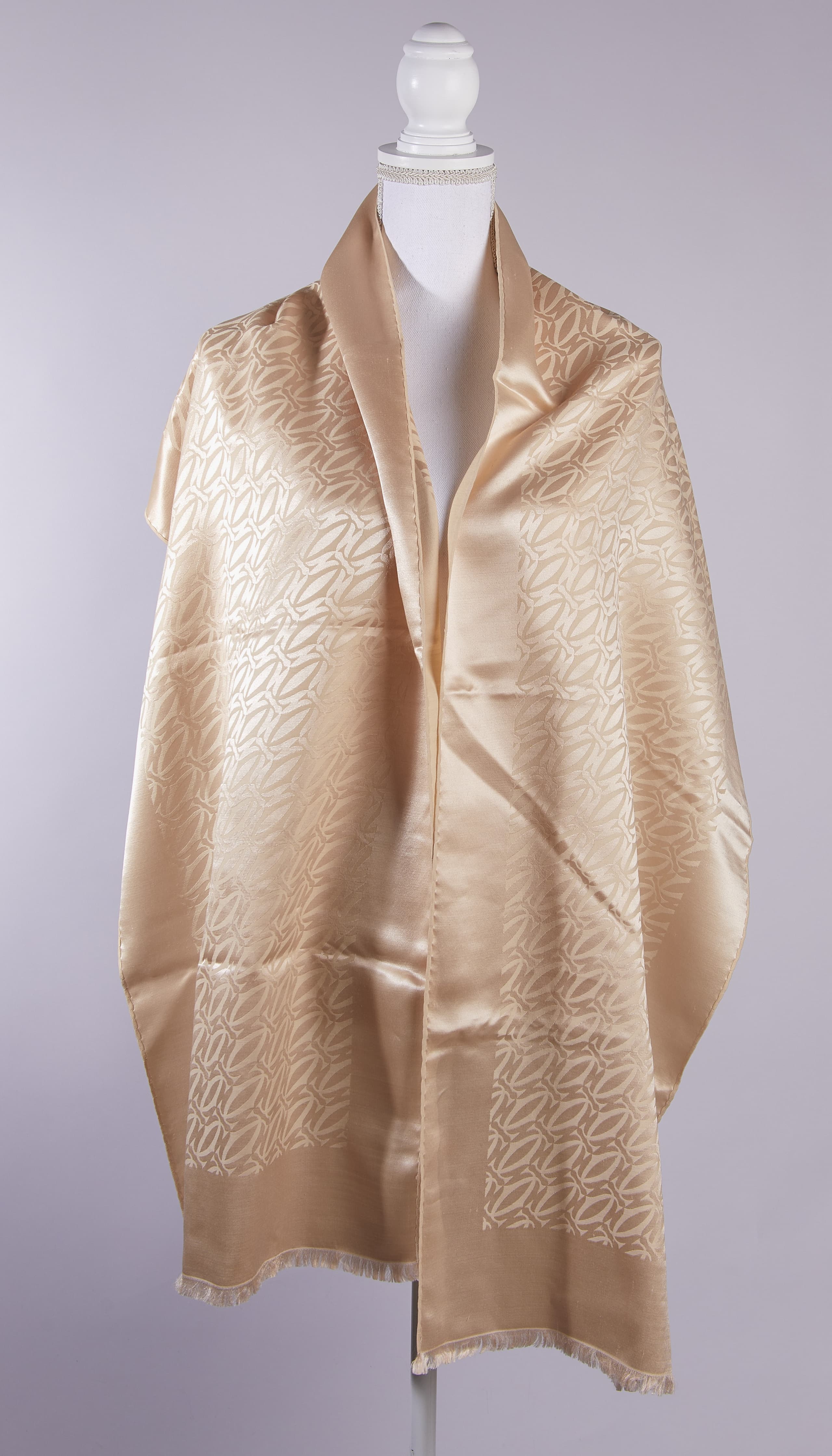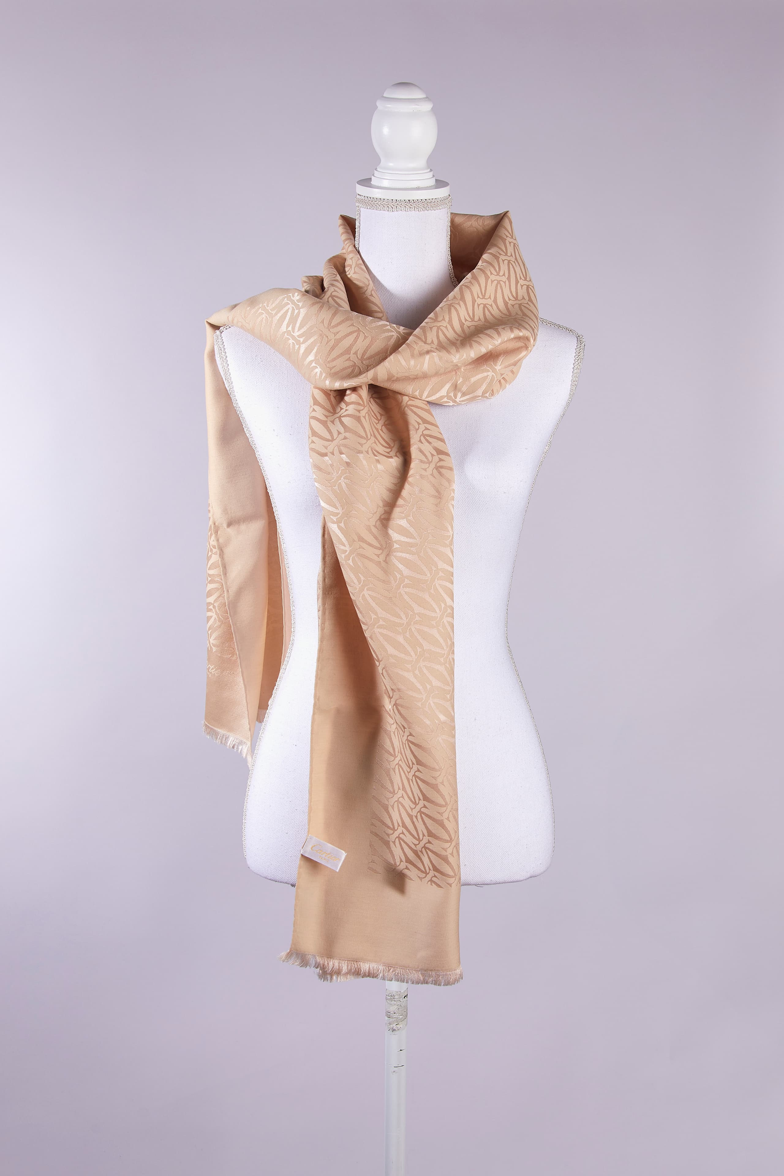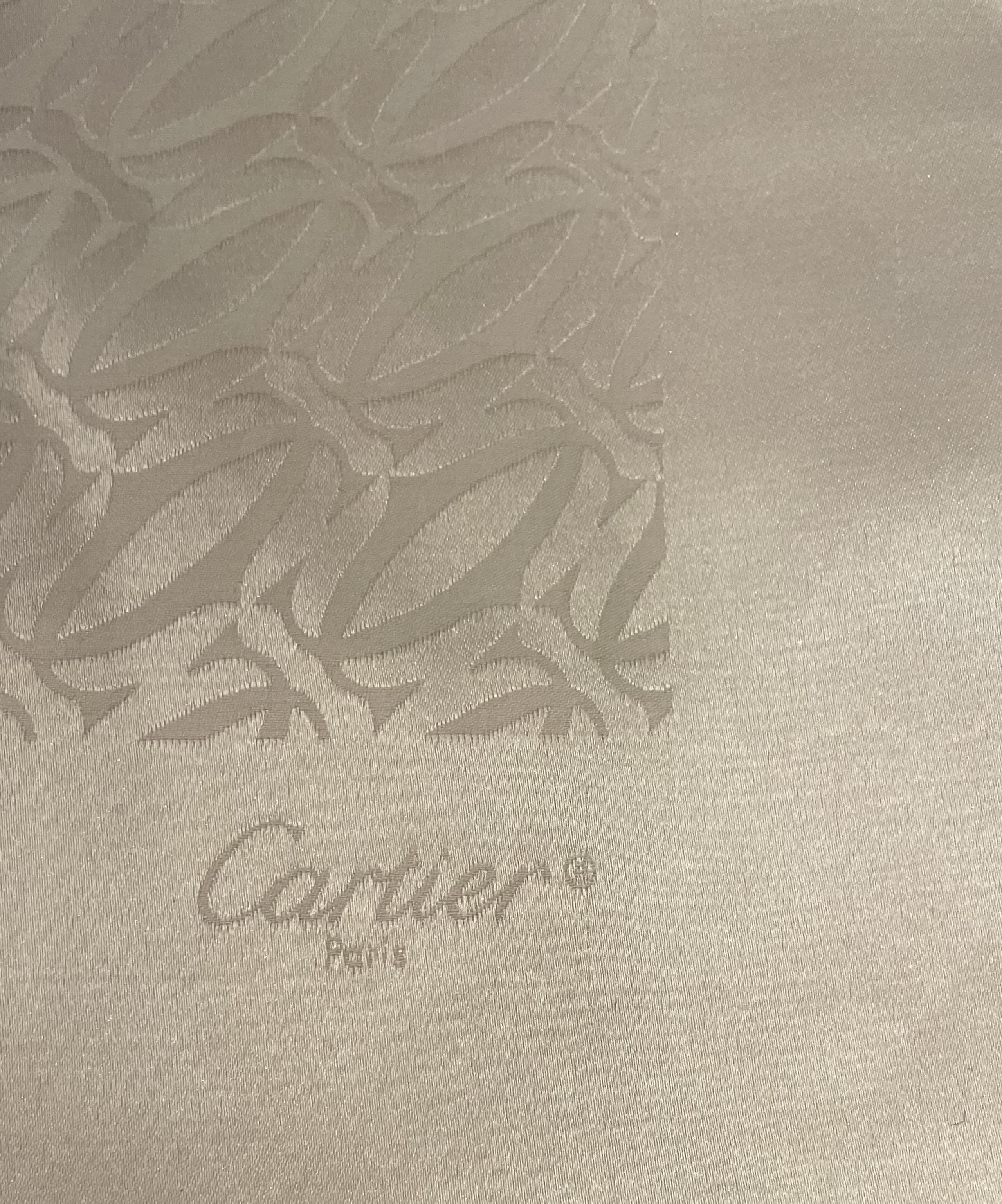 A vintage model, made in Italy, with a damask pattern with the Cartier logo. Pink/salmon colour 195 × 45 cm