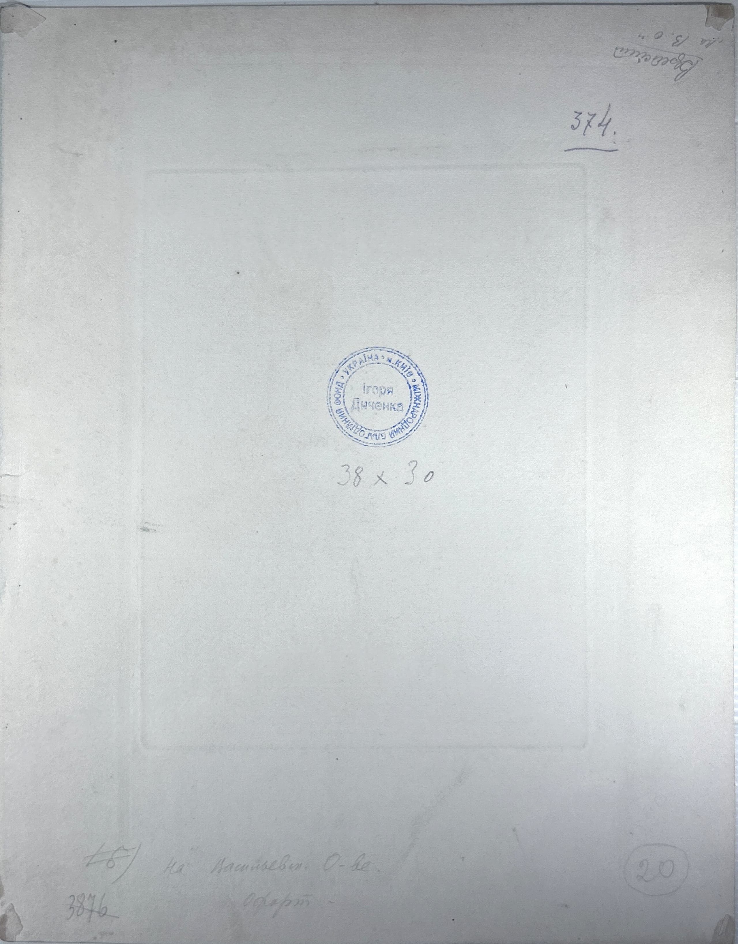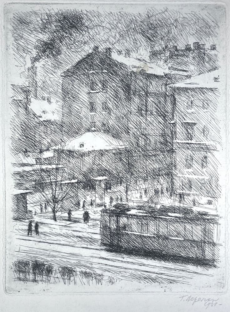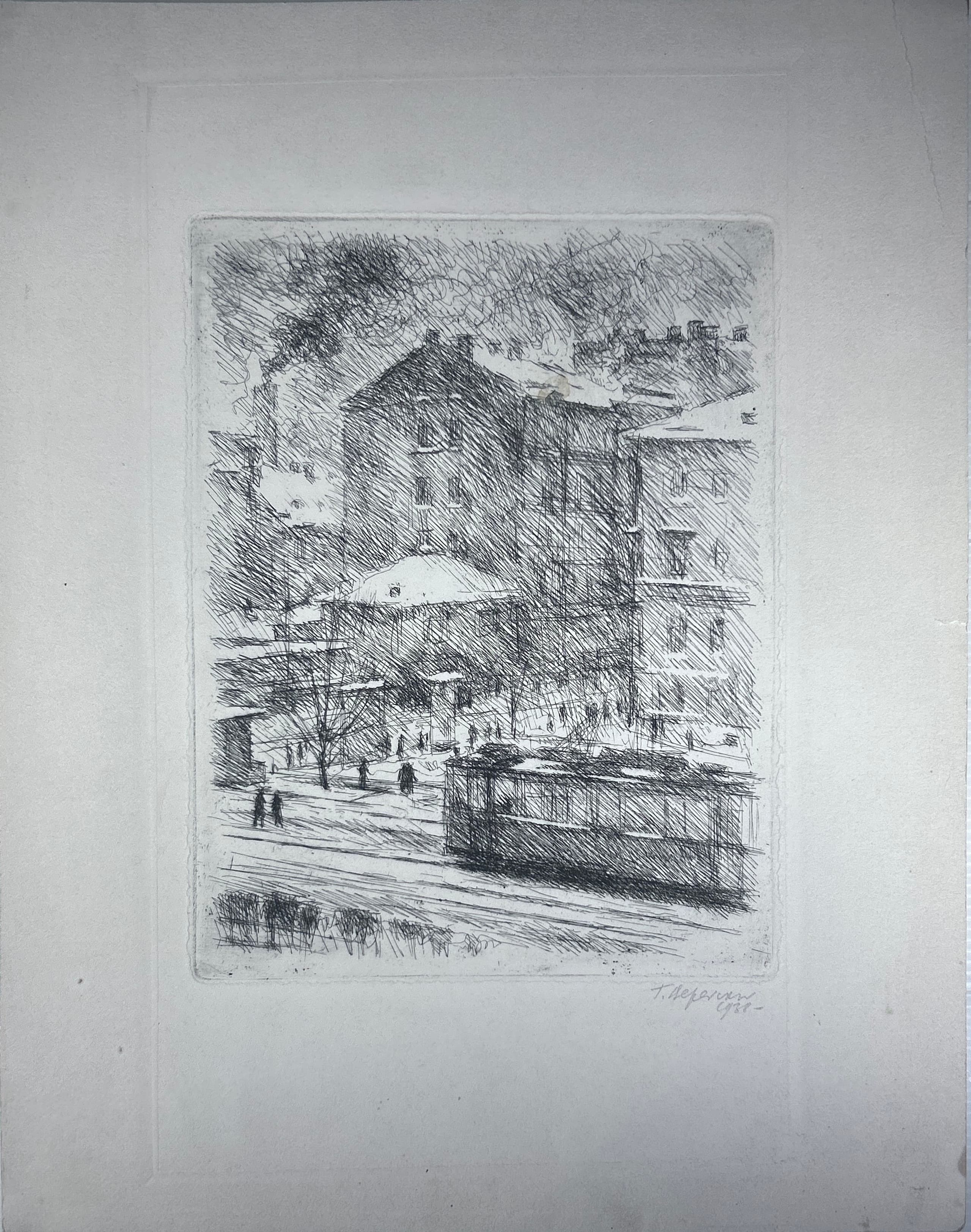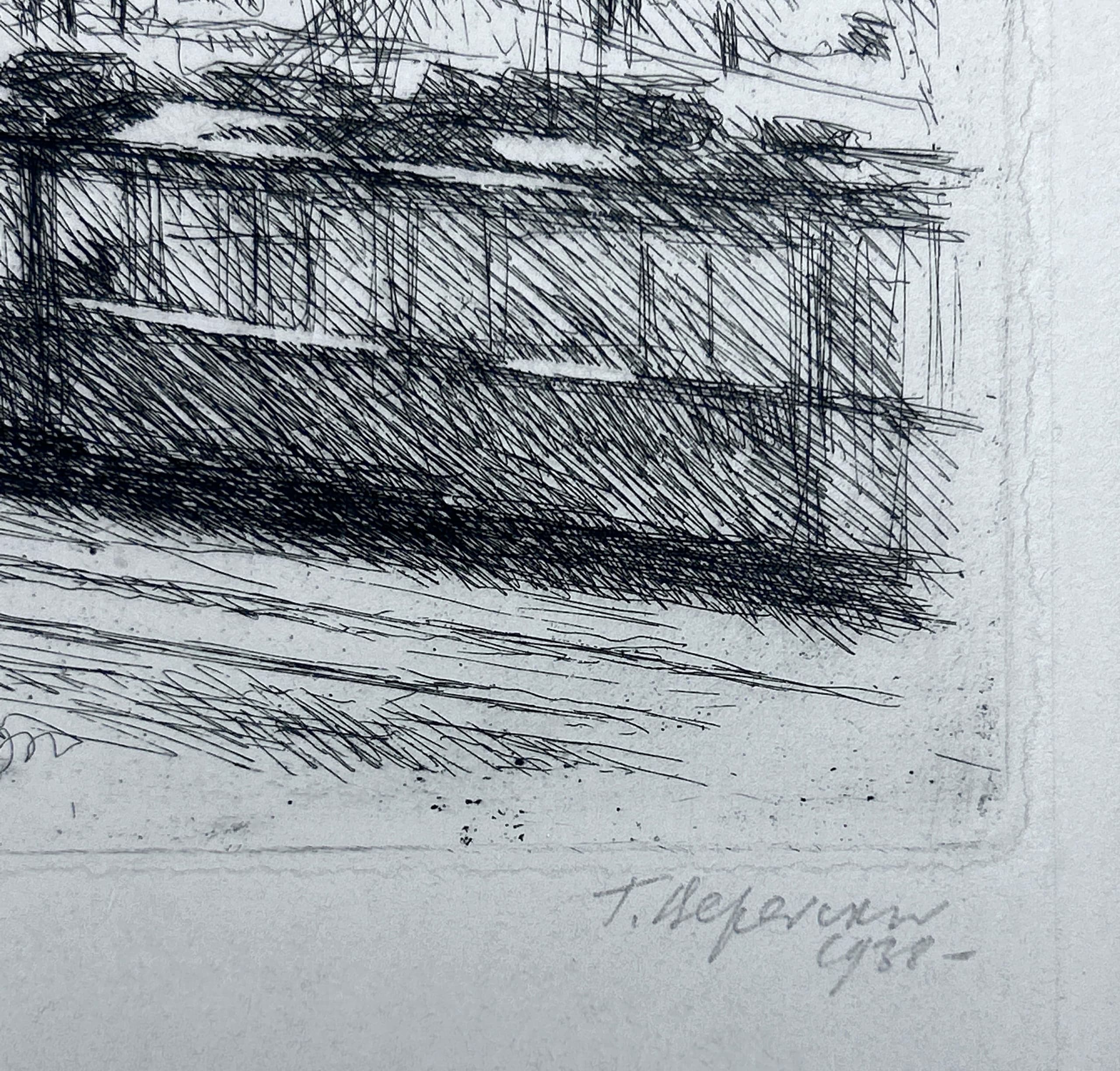 signed and dated in Cyrillic in pencil 'T Vereiski 1938' (lower right), ownership stamp of Igor Dichenko collection (on the reverse) etching on paper plate: 33.5 x 19.7 cm sheet: 38.2 x 30 cm Provenance: Collection of Igor Dichenko (Ihor Dychenko) (1946-2015), Soviet and Ukrainian collector, art historian, and painter; one of the ideologists of the Ukrainian avant-garde, Kyiv. Private collection, Europe