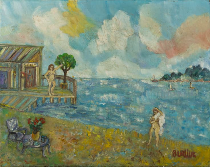 DAVID BURLIUK (1872-1957) Nude bathers on a shore