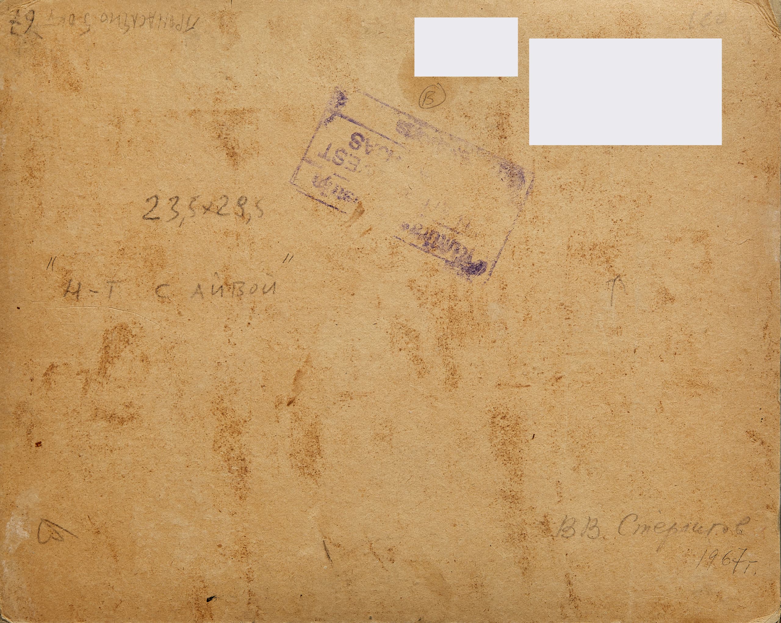 signed in Cyrillic and dated '1967', titled in Cyrillic 'N-t s ayvoy' (on the reverse) oil on board 23.7 x 29.7 cm executed in 1967