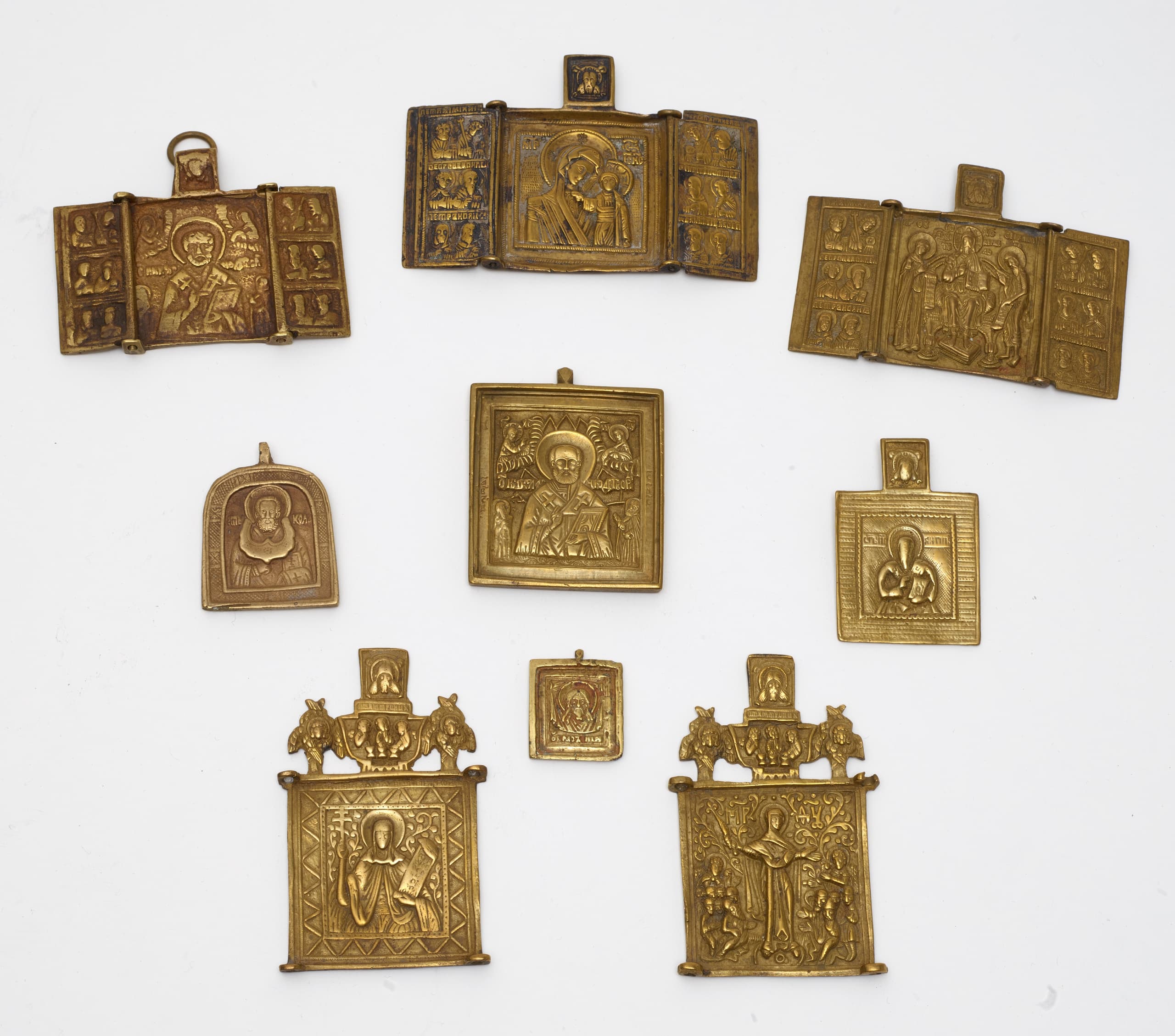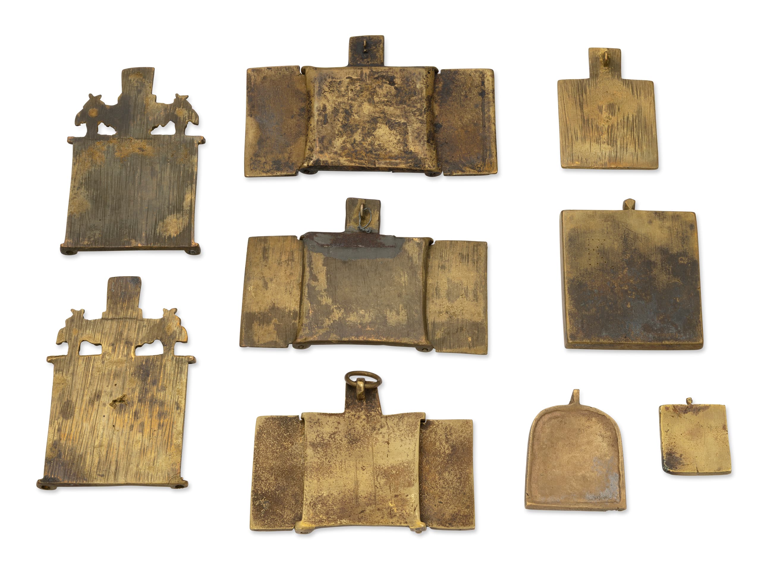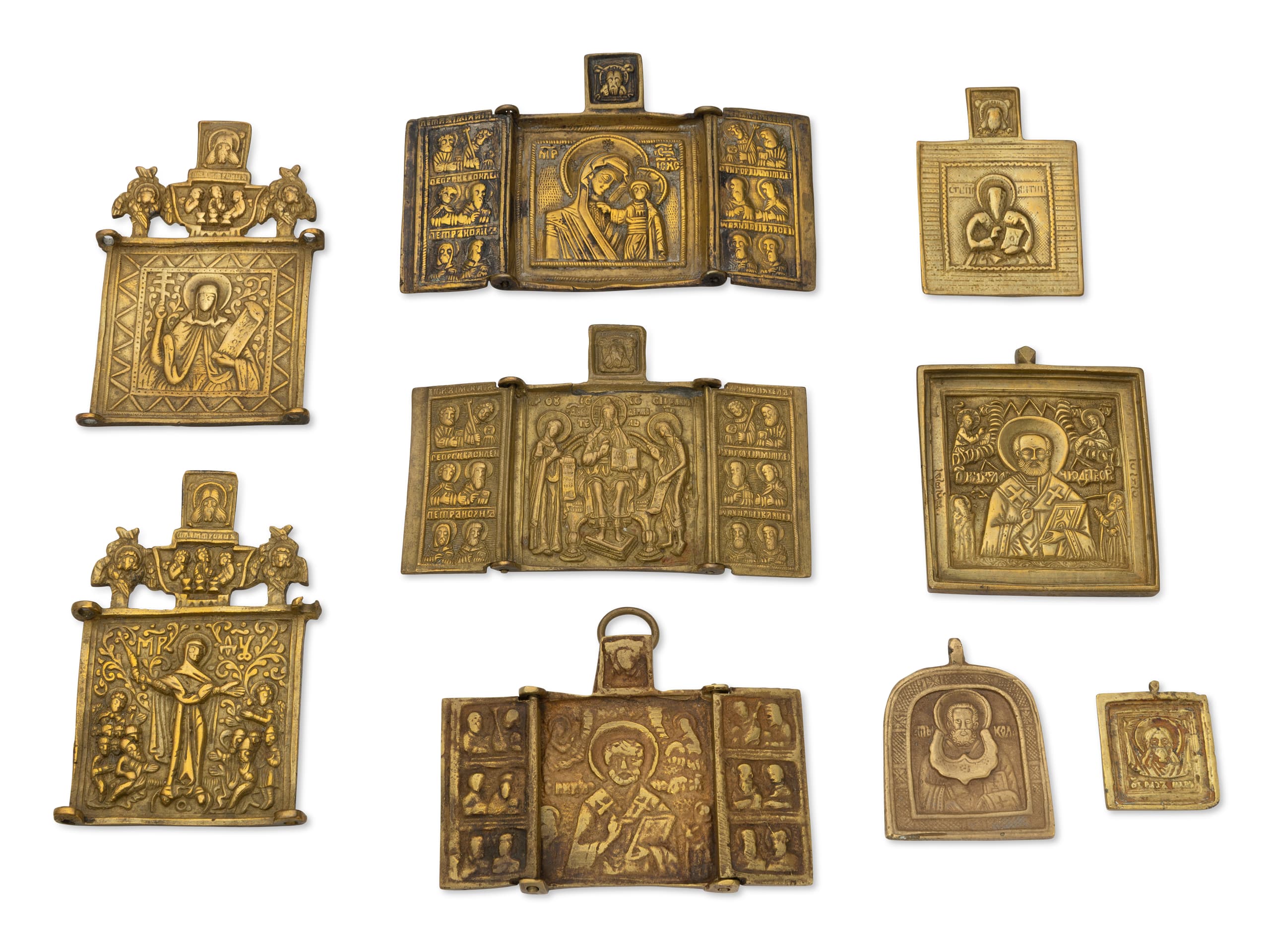 SET OF NINE MINIATURE COPPER-CAST ICONS, 18TH -19TH CENTURIES