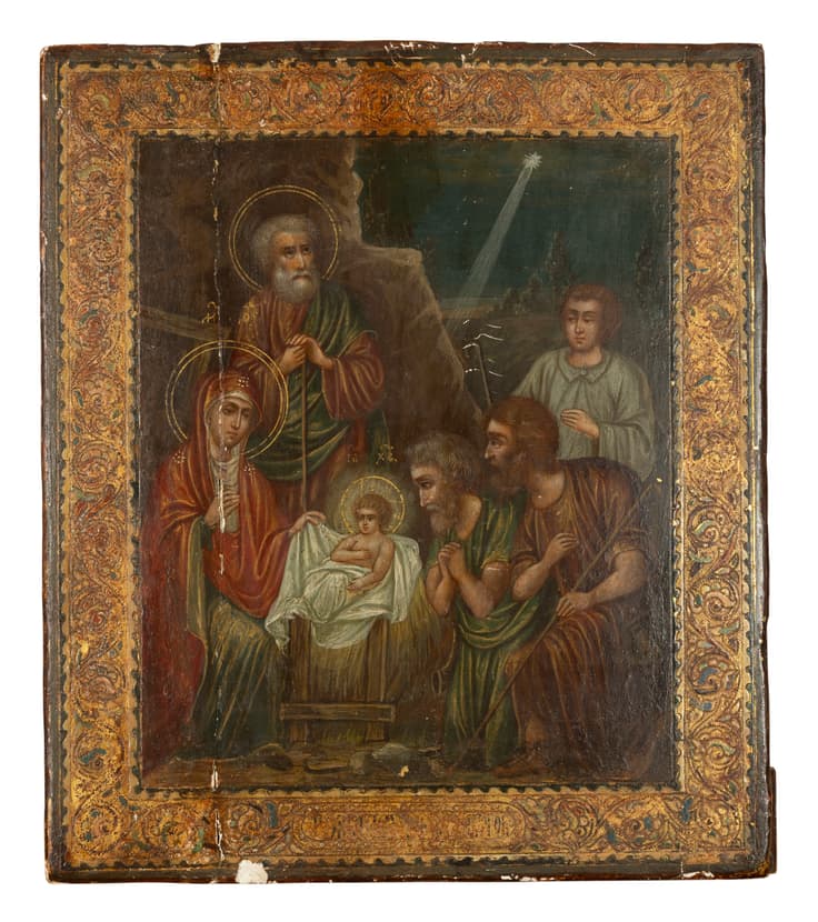 Condition: overall in good condition, minor losses of gilding and paint layer on the edges, crack on wood board, minor retouches in the center