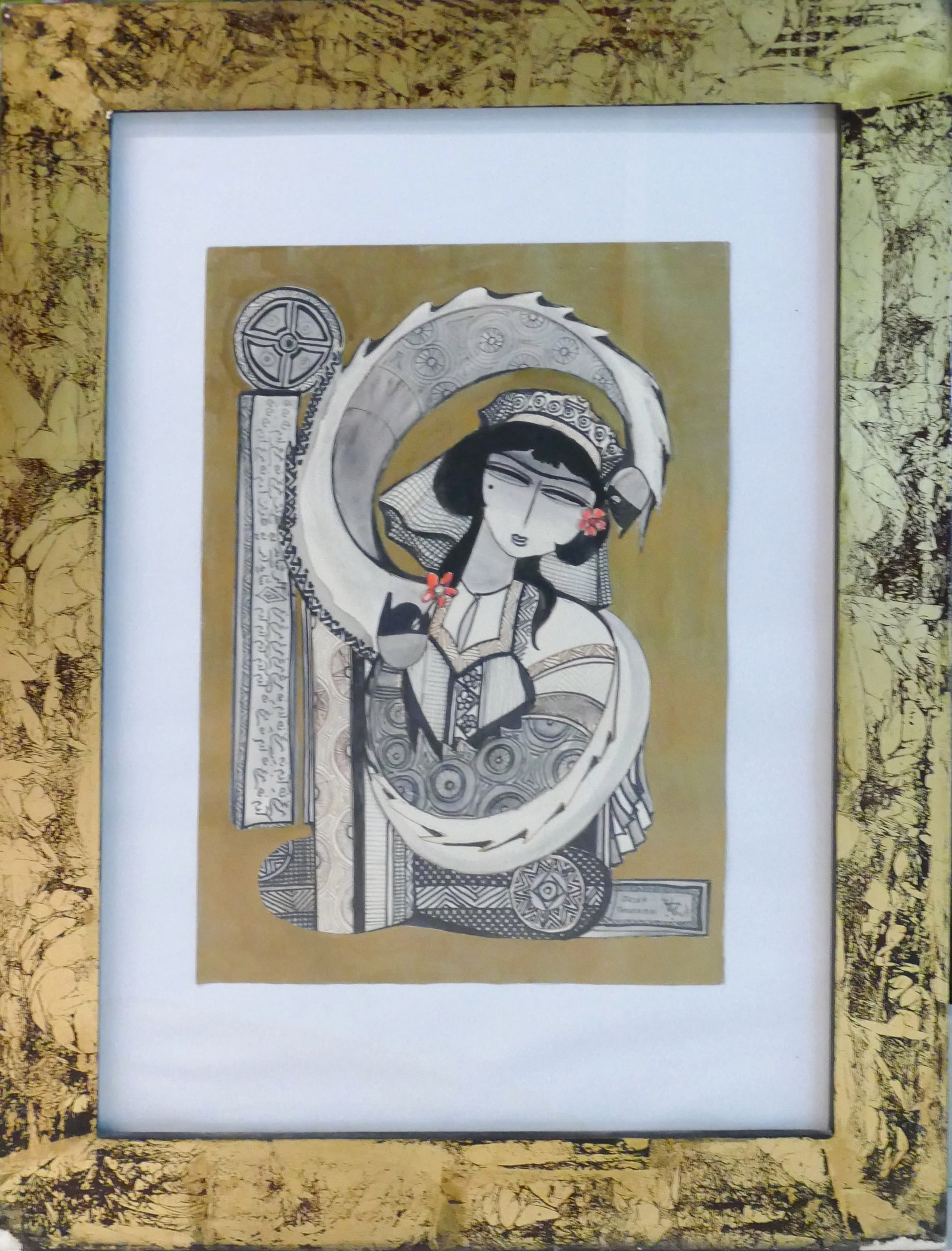 JAZEH TABATABAI (1931-2008) Female figure with flowers