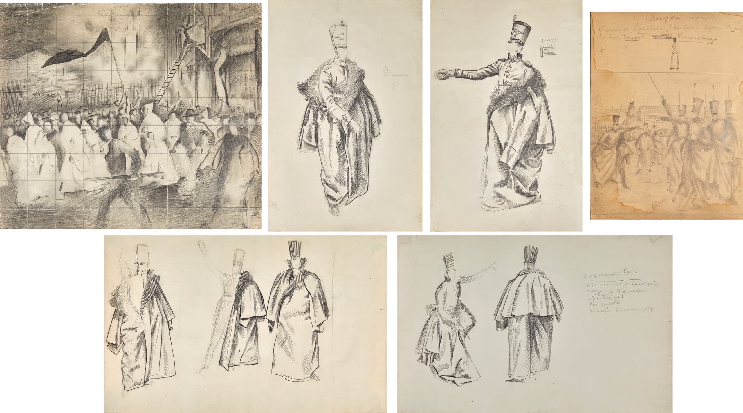 Set of six costume designs for the theatrical production 'The Decembrists', 1924
