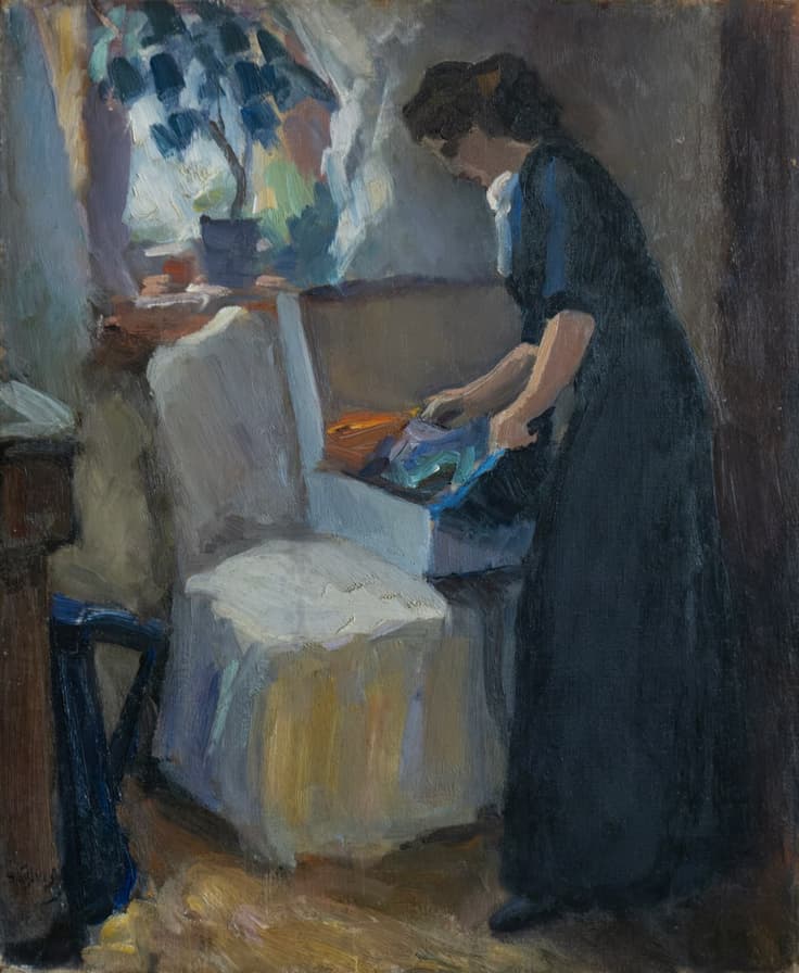 He later continued his training in Paris with Henri Matisse and at the Académie Vitti. Returning to Russia in 1910, he continued to refine his craft under Korovin's guidance. In 1911, he painted 'At Work', exhibited at the 41st exhibition of the Society for Travelling Art Exhibitions (Peredvizhniki), where it was displayed between works by Ilya Repin and Vasily Polenov (now in the Nizhny Novgorod State Art Museum).