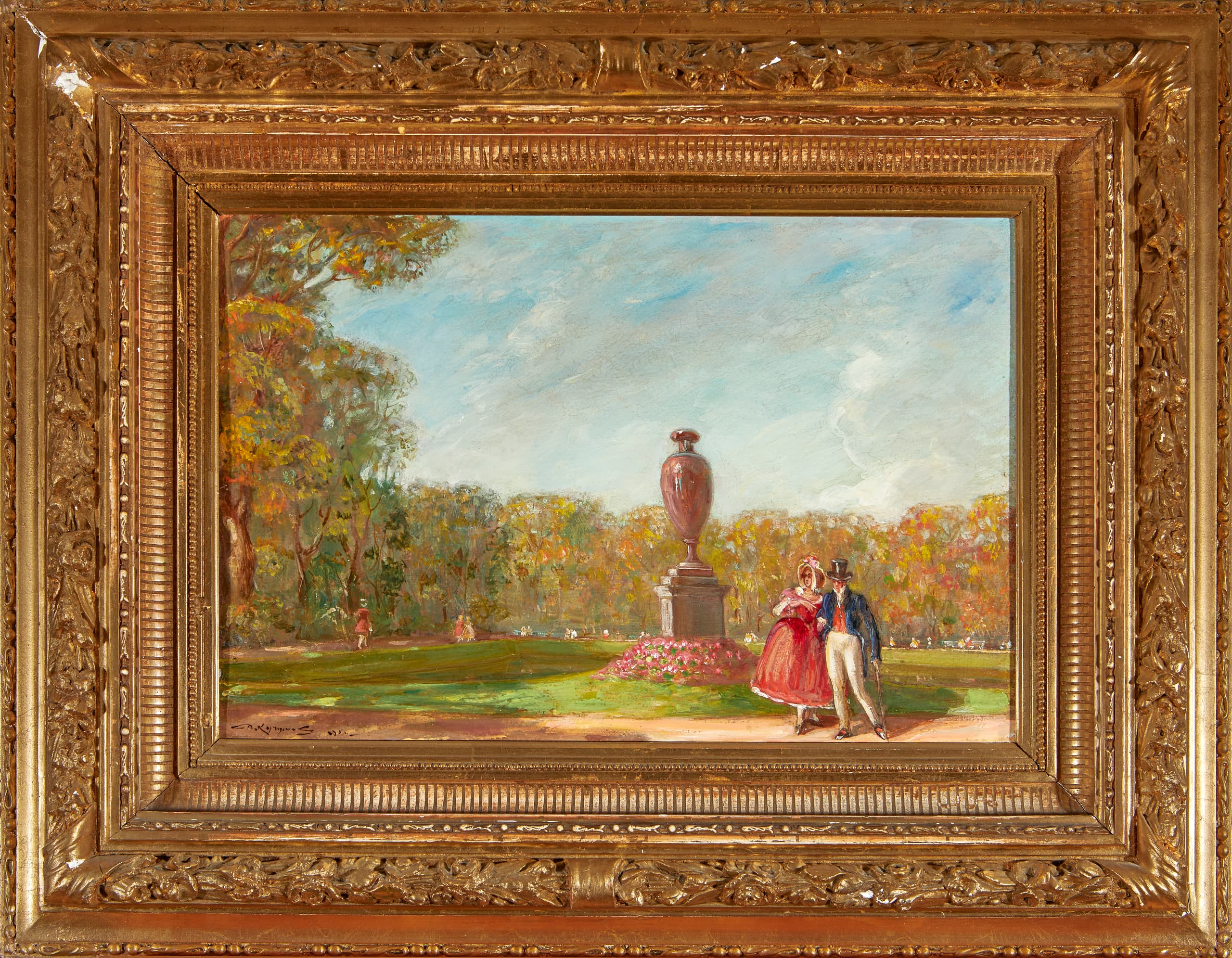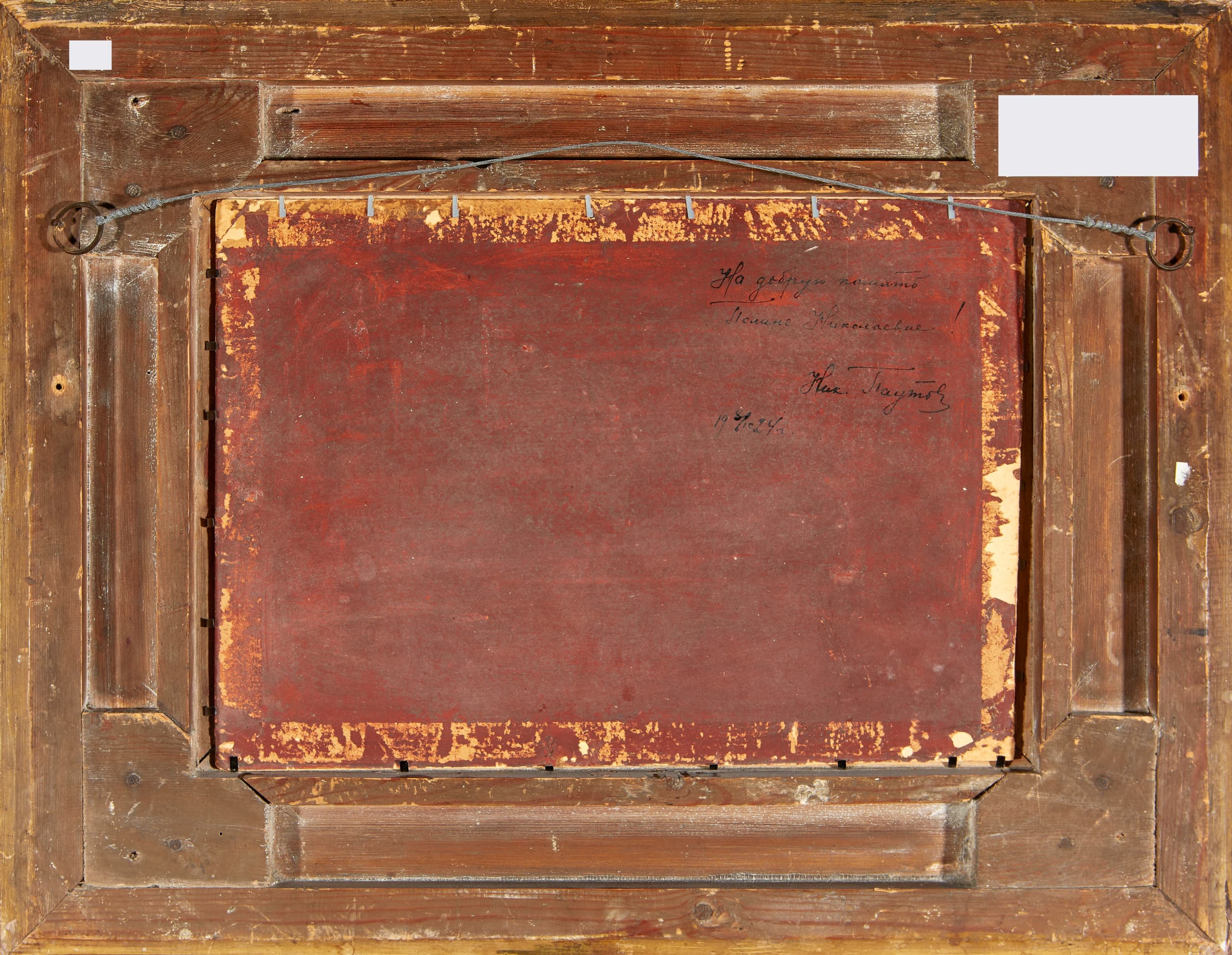 signed in Cyrillic and dated 'V. Kuchumov 1924'(lower left); inscribed in Cyrillic 'Na dobruyu pamiat Poline Nikolaevne/ Nik. Pautov/ 19 8/10 24 [In good memory, to Polina Nikolaevna from Nikolai Pautov]'(on the reverse)