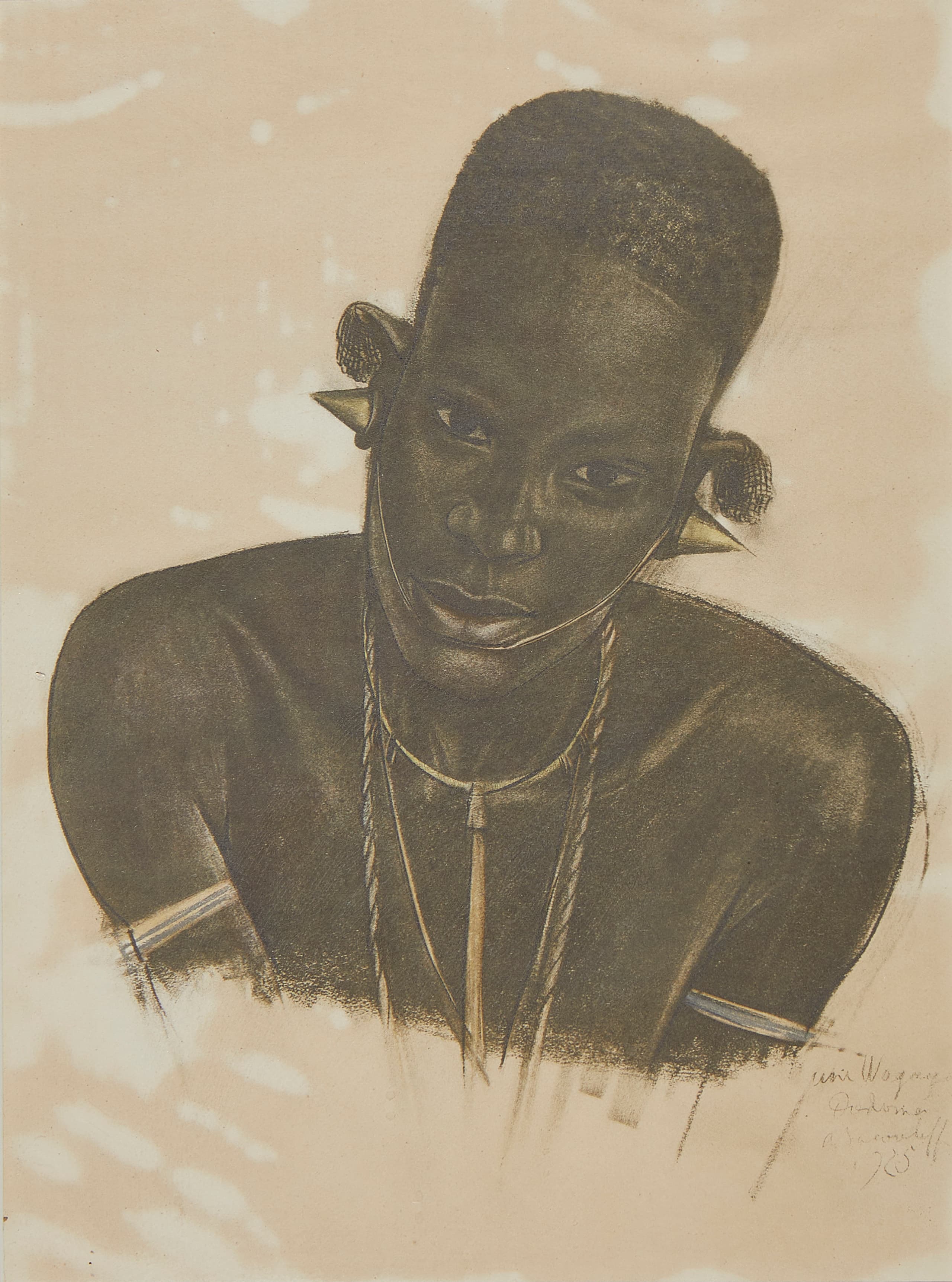 Alexander Yakovlev was the official painter for the scientific expeditions to Centre's Africa launched by André Citroën. In 1924-25, he took part in the Croisière Noire expedition that crossed the Sahara, Niger, Chad and the Congo before arriving in Madagascar. The expedition enabled to build up a major African natural science collection, bring back more than 6, 000 photographs and make a film.