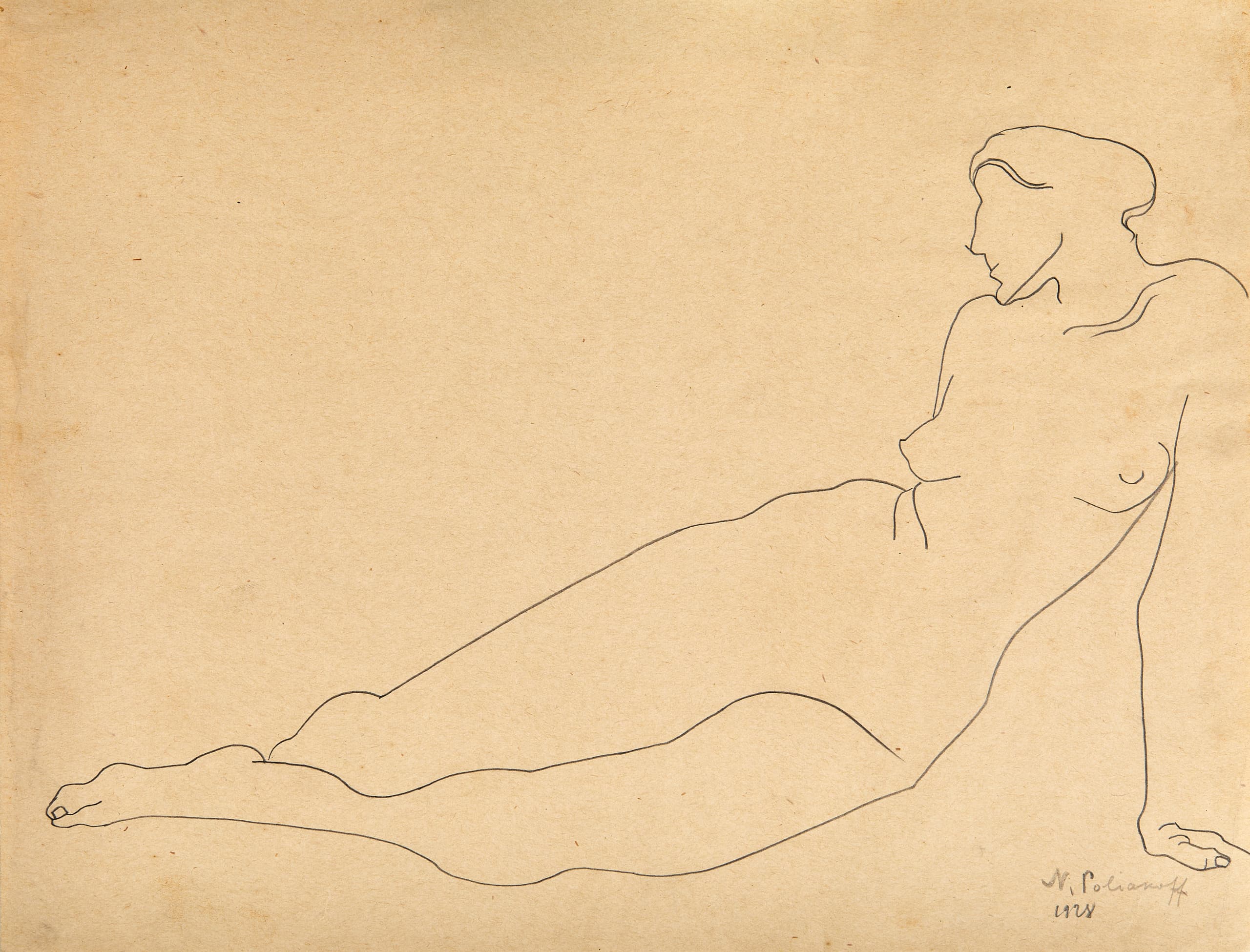 each signed, dated, 3 of them located 'N. Poliakoff Paris 1928' pencil on paper 24.7 х 32.3 cm executed in 1928