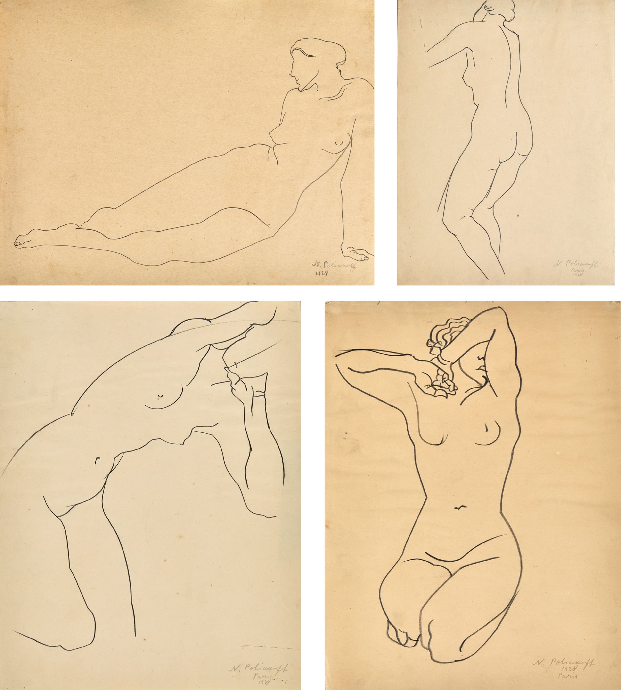 NICOLAS POLIAKOFF (1899-1976) Set of four female nude drawings