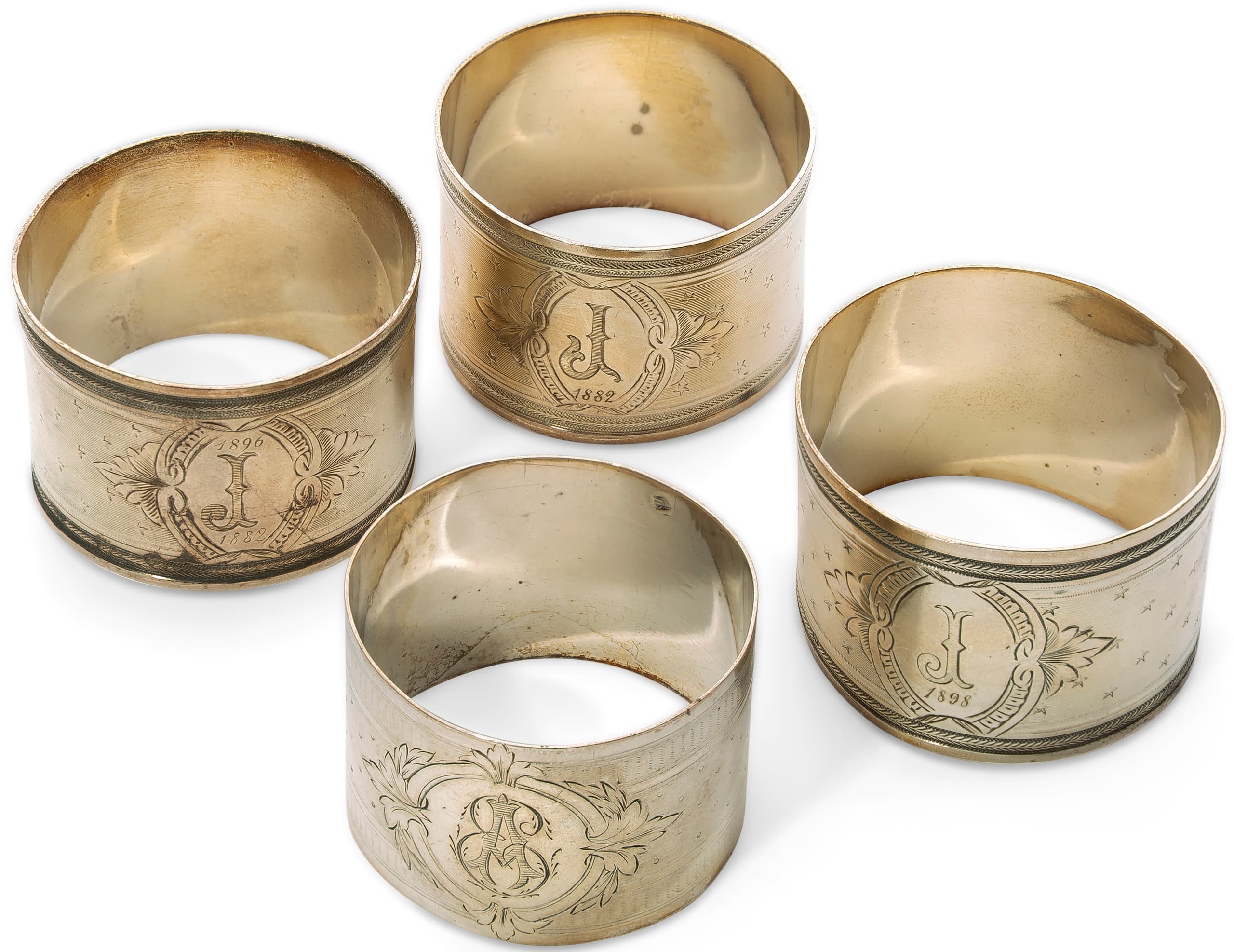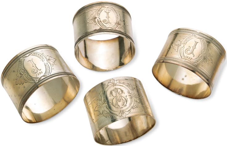 SET OF FOUR FRENCH SILVER MONOGRAMED NAPKINS RINGS