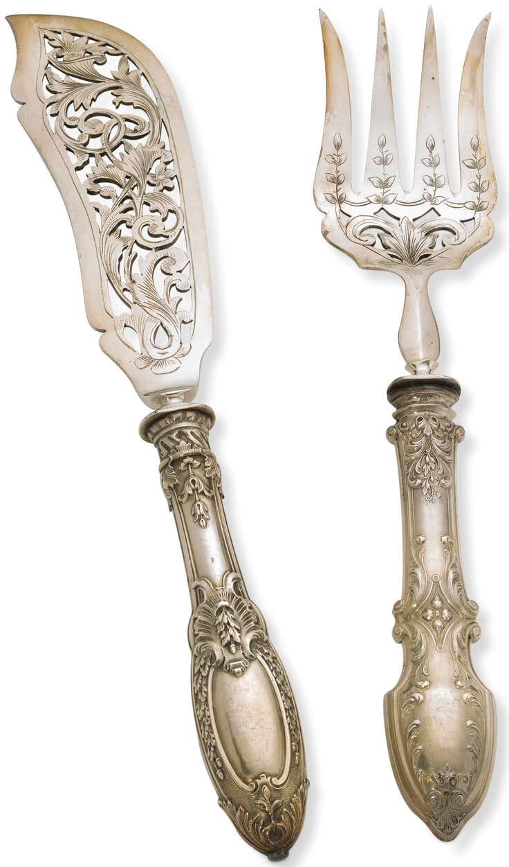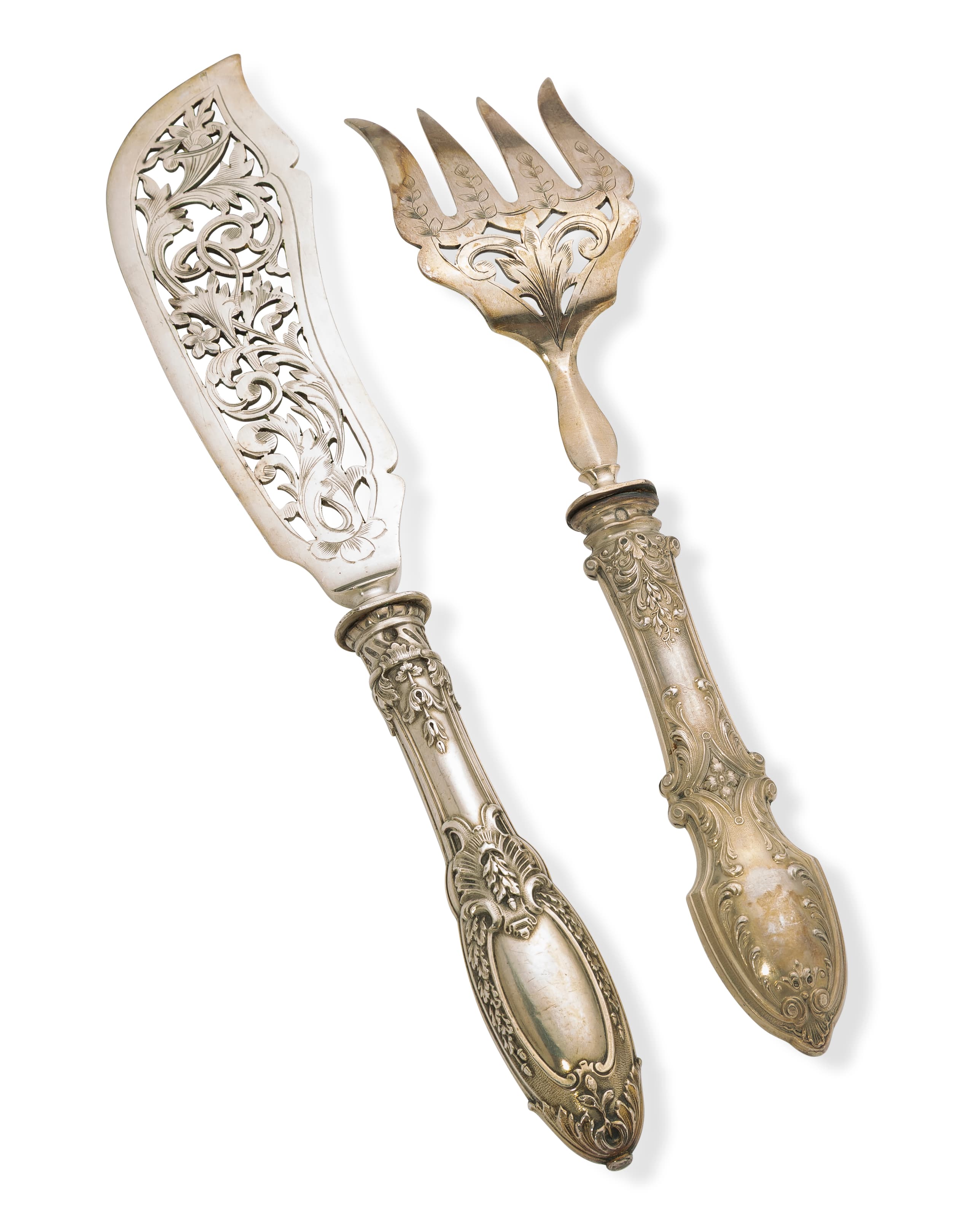 SET OF FRENCH SILVER FISH CUTLERY WITH OPENWORK DECORATION OF FLOWERS AND FOLIAGE