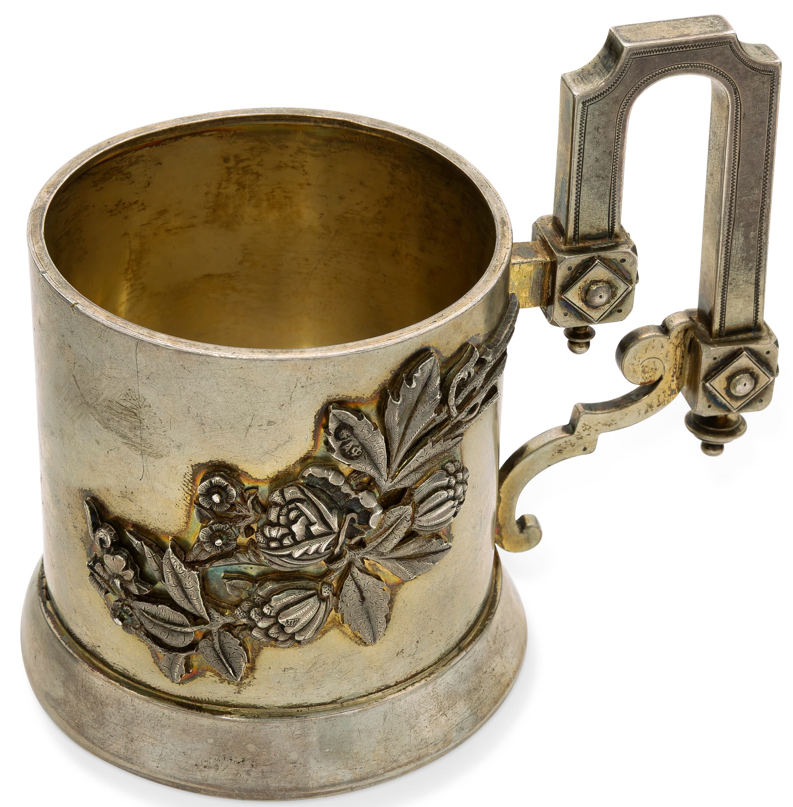 RUSSIAN PARCEL-GILT SILVER TEA GLASS HOLDER WITH GEOMETRIC HANDLE