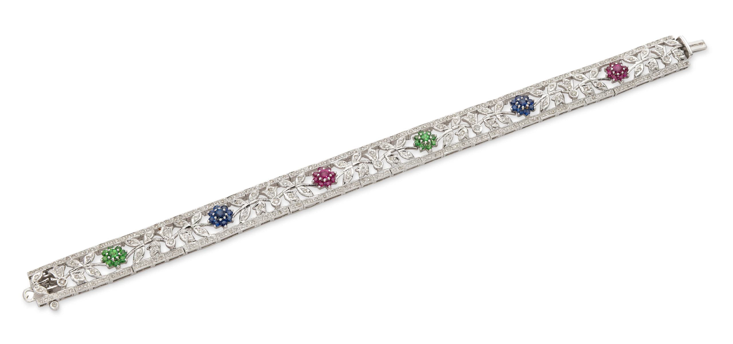 ‘FLOWERS’ 18K WHITE GOLD, DIAMOND, RUBY, SAPPHIRE, EMERALD BRACELET