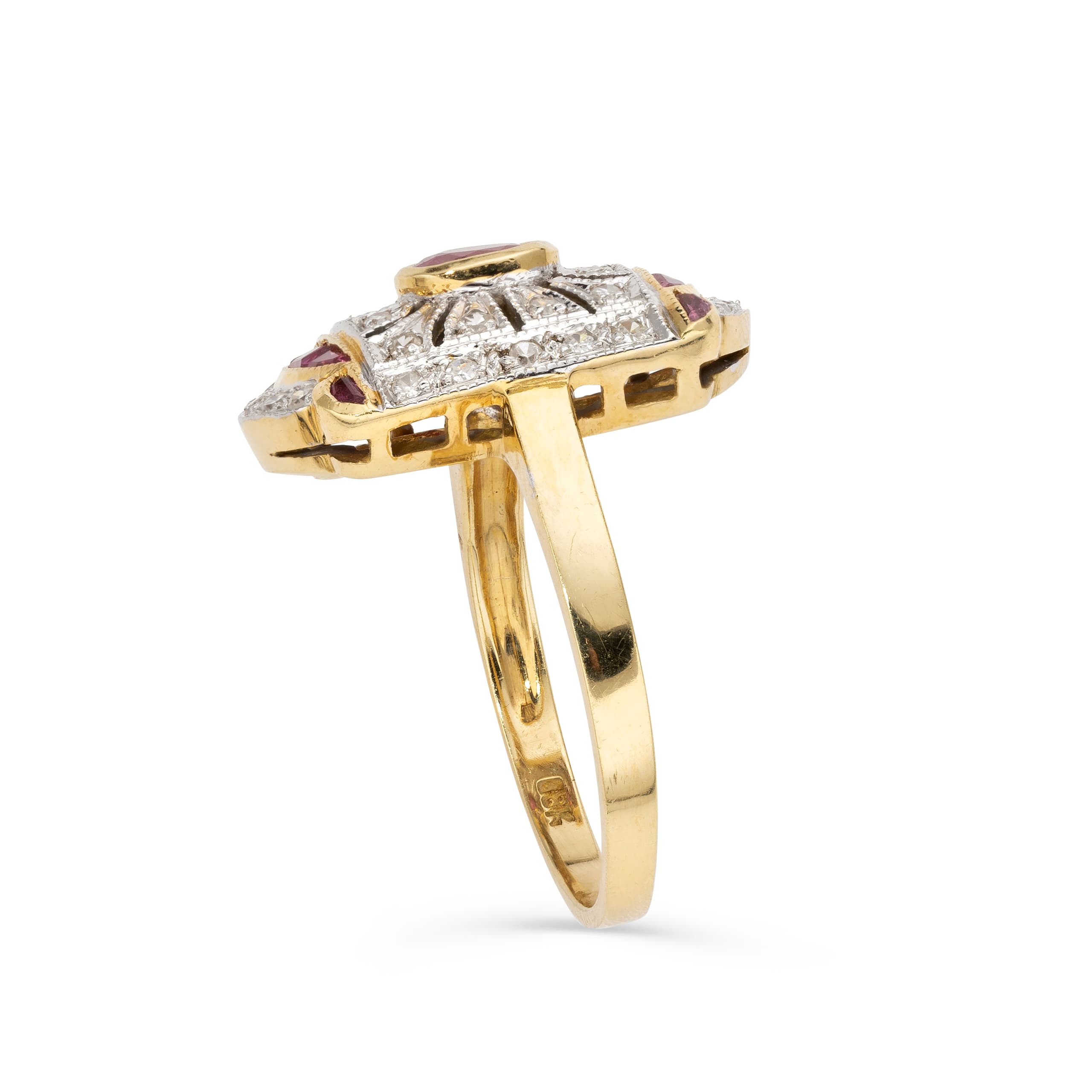 RING 18K YELLOW GOLD, DIAMOND, RUBY