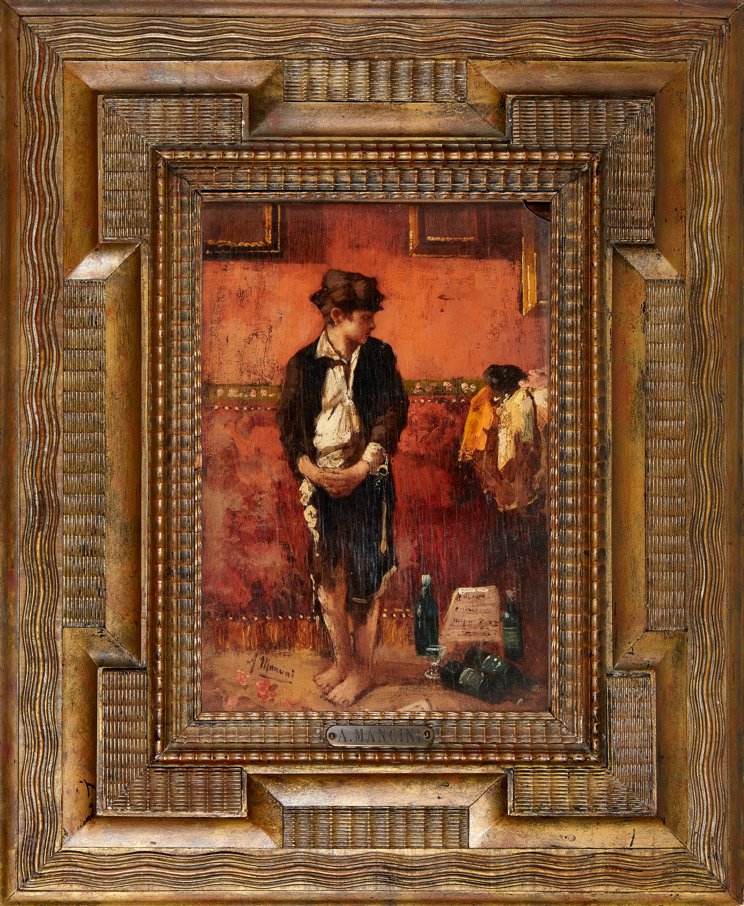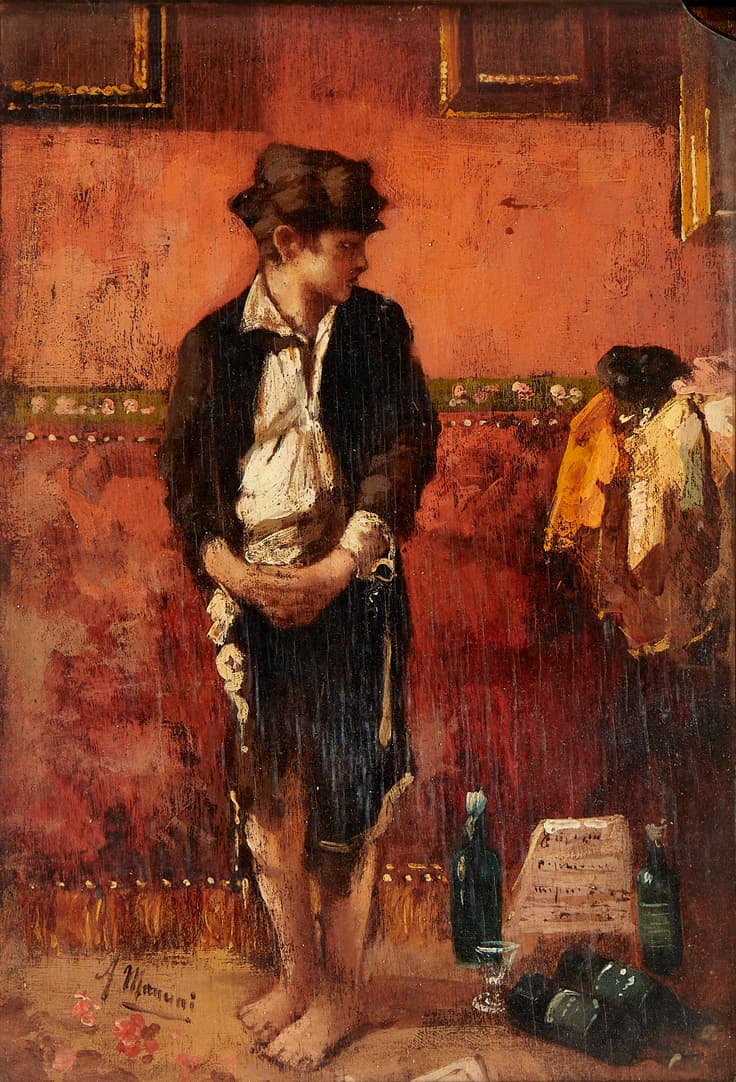 Antonio Mancini (1852 - 1930) was an Italian painter active in the second half of the 19th and the first half of the 20th century, belonging to the Macchiaioli pictorial movement. His precociousness and artistic ability enabled him to be admitted at the age of twelve to the Naples Academy of Fine Arts, where he was a pupil of Domenico Morelli, Stanislao Lista and Filippo Palizzi. He became close friends with Vincenzo Gemito. Under the guidance of his masters, his art evolved rapidly, and in 1872 he exhibited two paintings at the Paris Salon. He devoted himself to portraiture and anecdotal genre painting. His art became identified with the verismo movement. His creations depict children, young girls, the poor, young circus performers and musicians he had observed in the streets of Naples. During his stay in Paris, he made the acquaintance of Impressionists Edgar Degas and Édouard Manet. He also became a friend of John Singer Sargent, who considered him the best living painter.