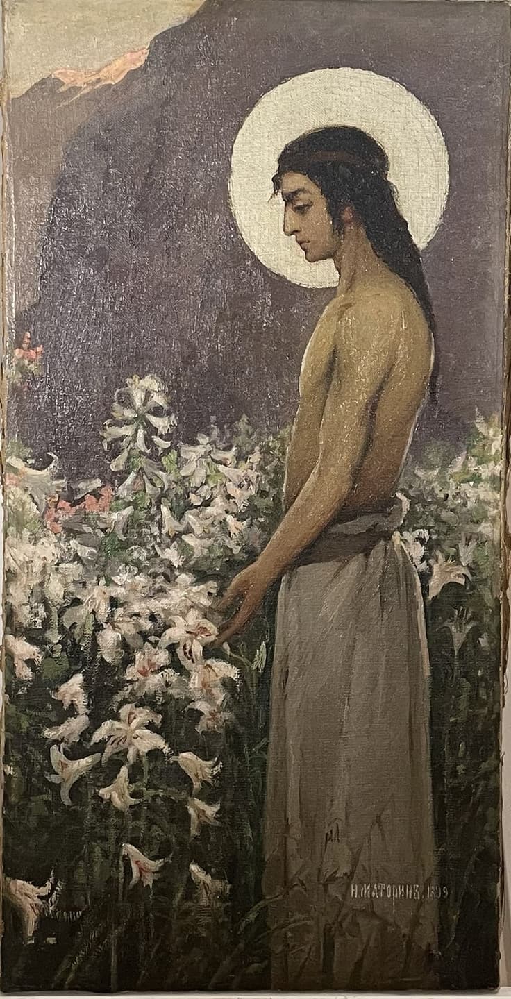 signed in Cyrillic and dated ‘N. Matorin 1899’ (lower right) oil on canvas 60 x 30 cm painted in 1899