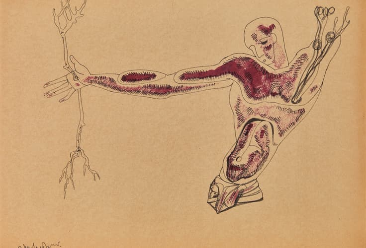 signed in Cyrillic ‘E. Neizvestny’ (lower left) felt pen, watercolour on paper 40 x 58 cm