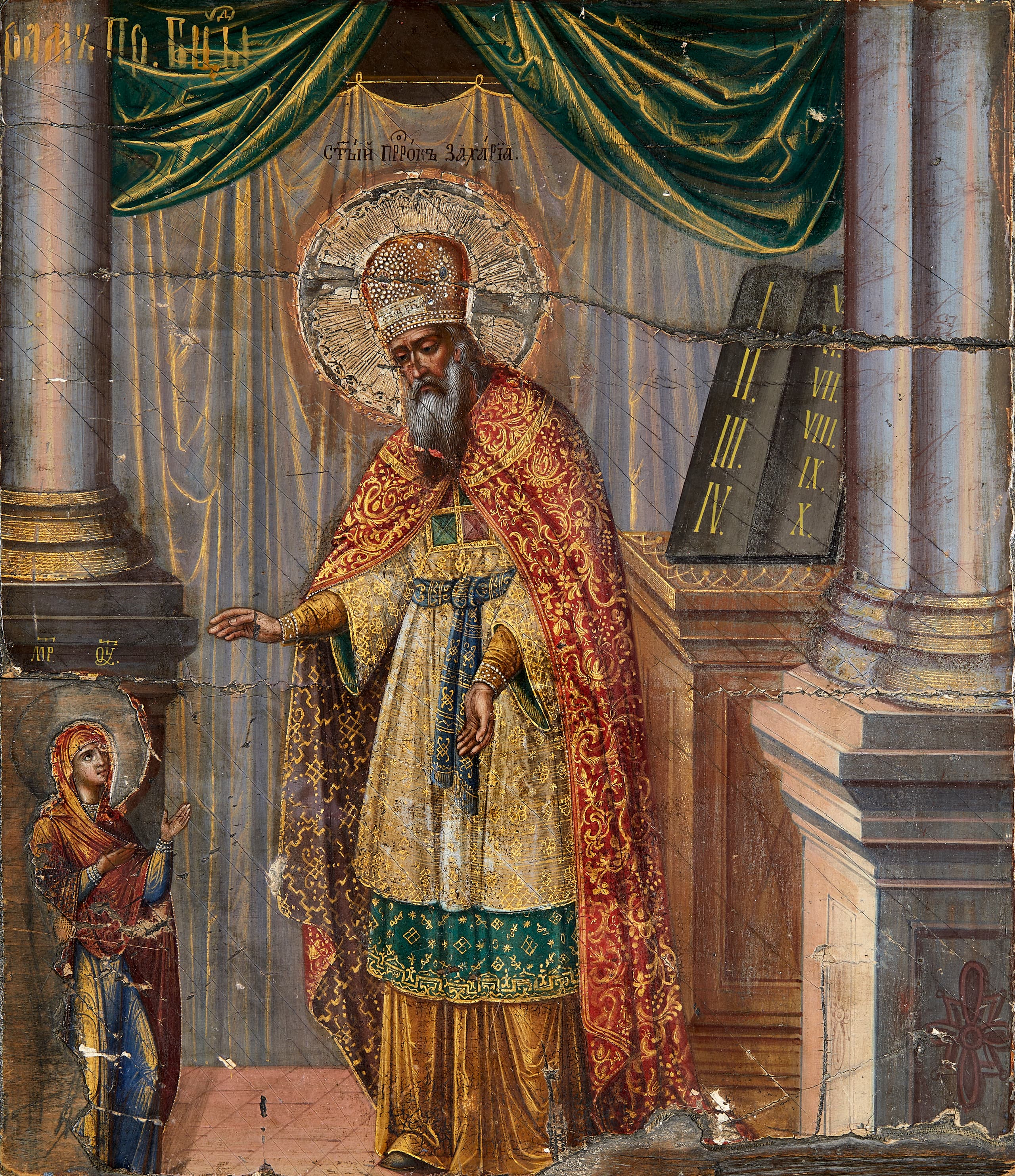 The icon is distinguished by the high quality of the paint and numerous ornaments on the vestments.